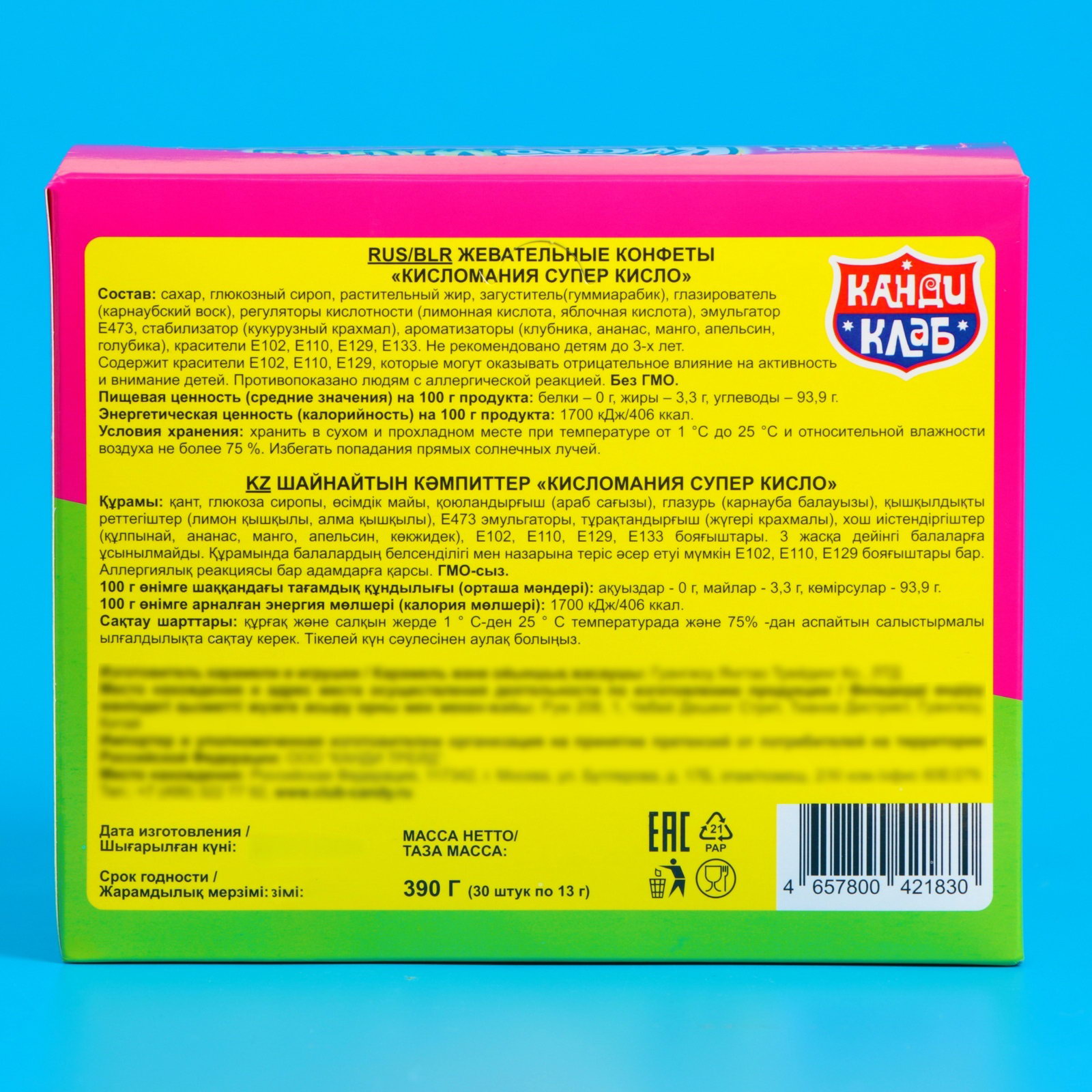 Жевательные конфеты "Кисломания Супер Кисло" 13г, Канди клаб, Китай