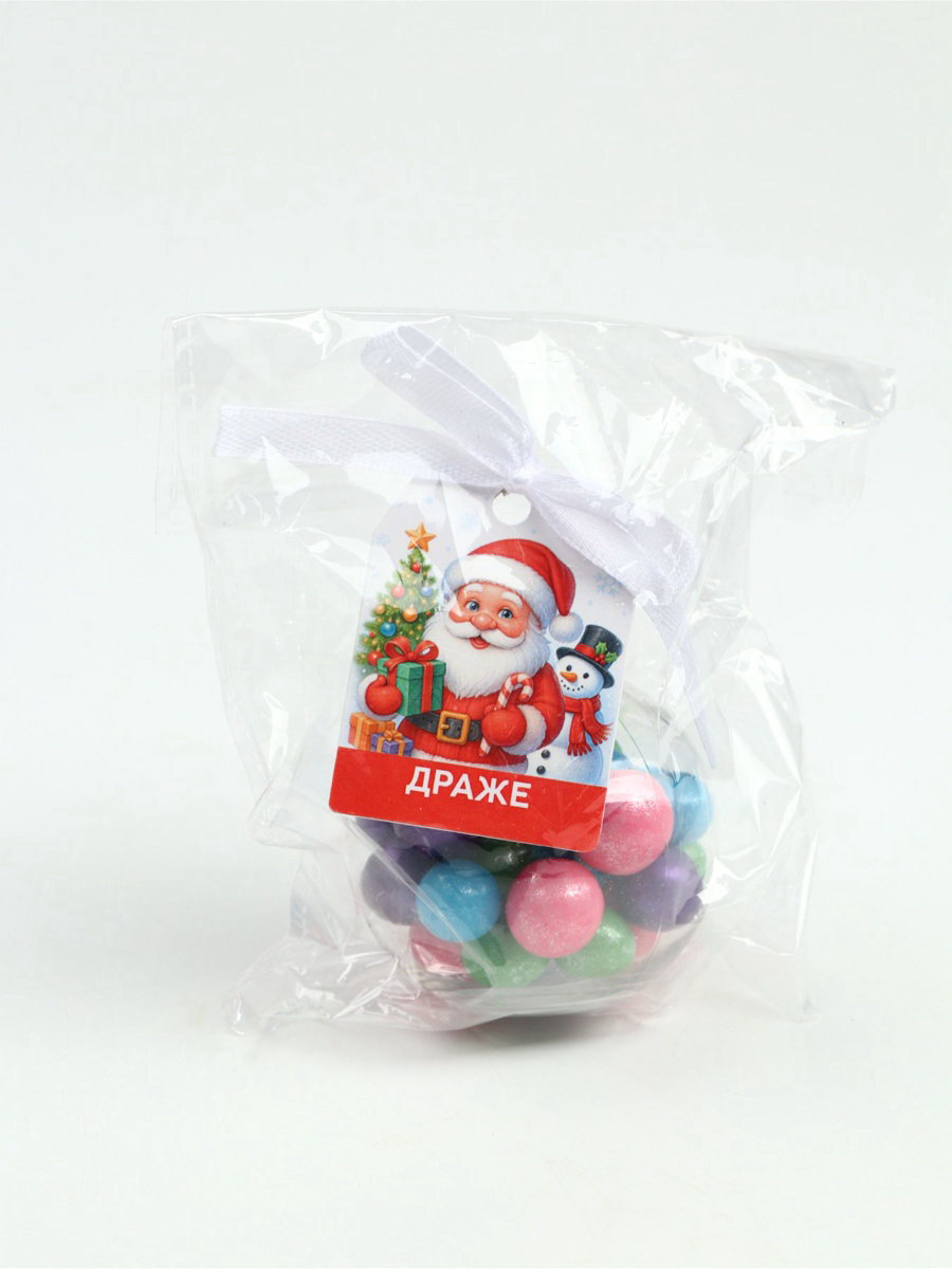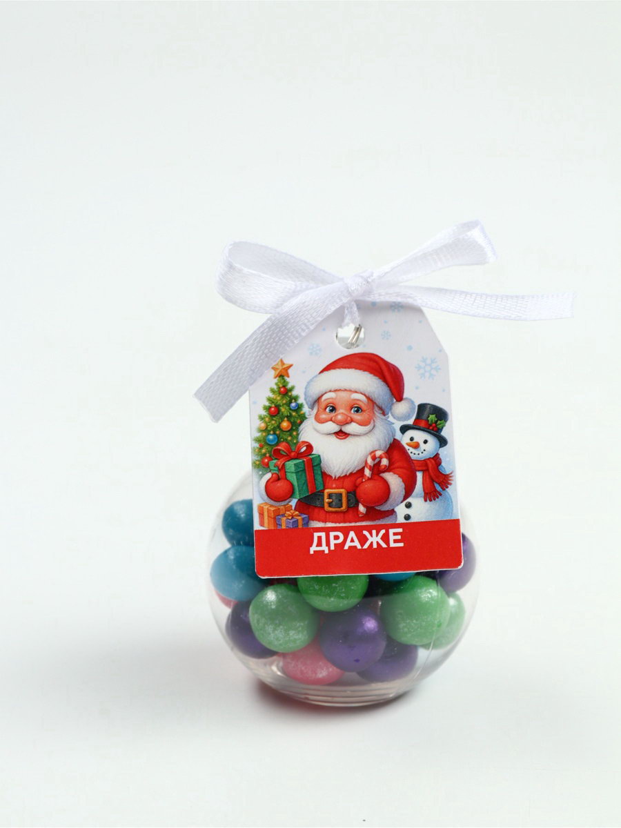 Драже новогоднее в круглой банке с шильдом "Дед Мороз", 35 г, Фабрика счастья, Россия