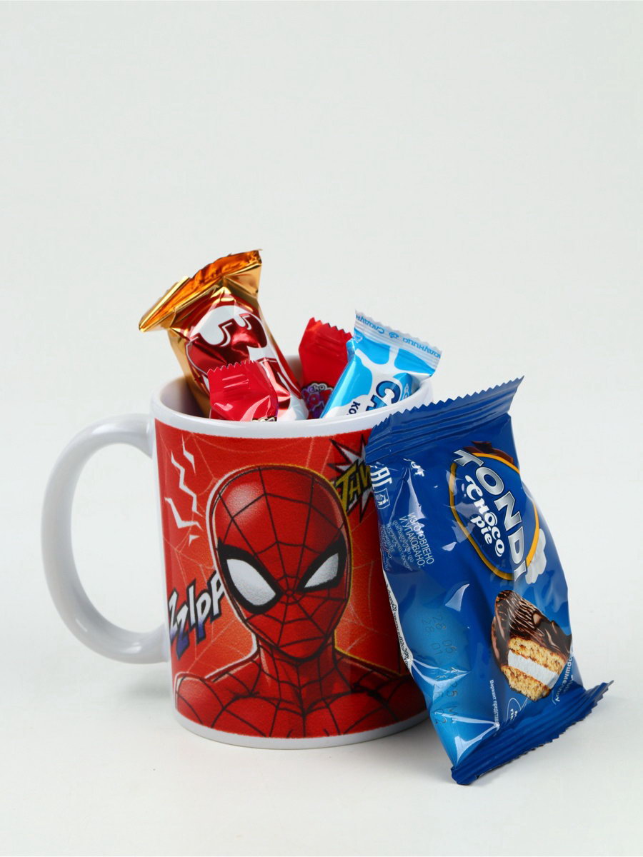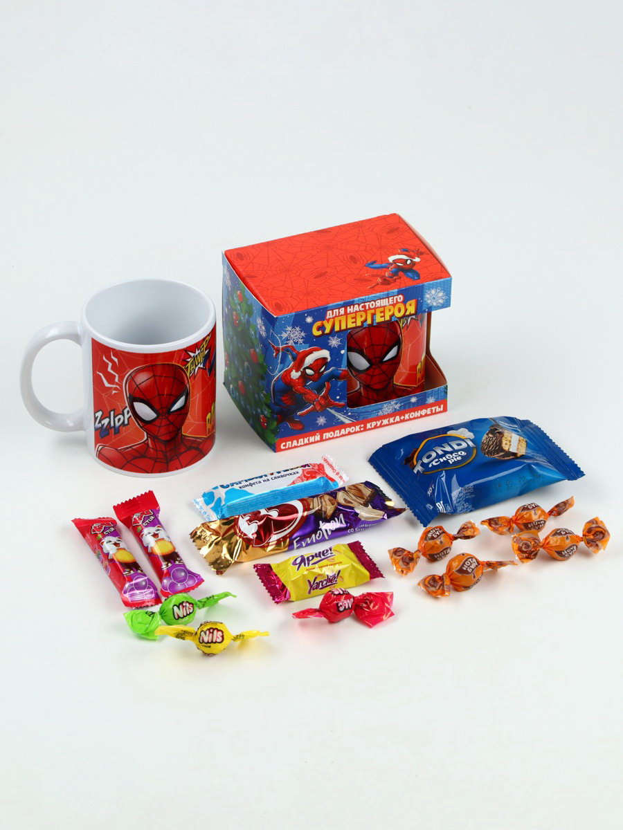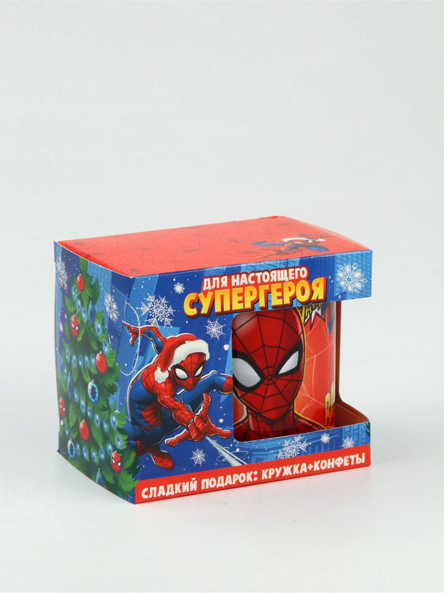 Детский сладкий новогодний подарок "Человек-паук", конфеты 150 г, кружка керамическая, MARVEL, Россия