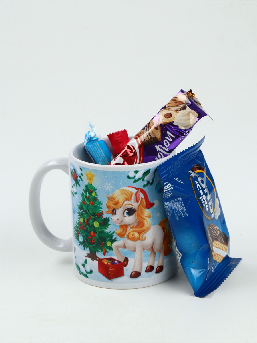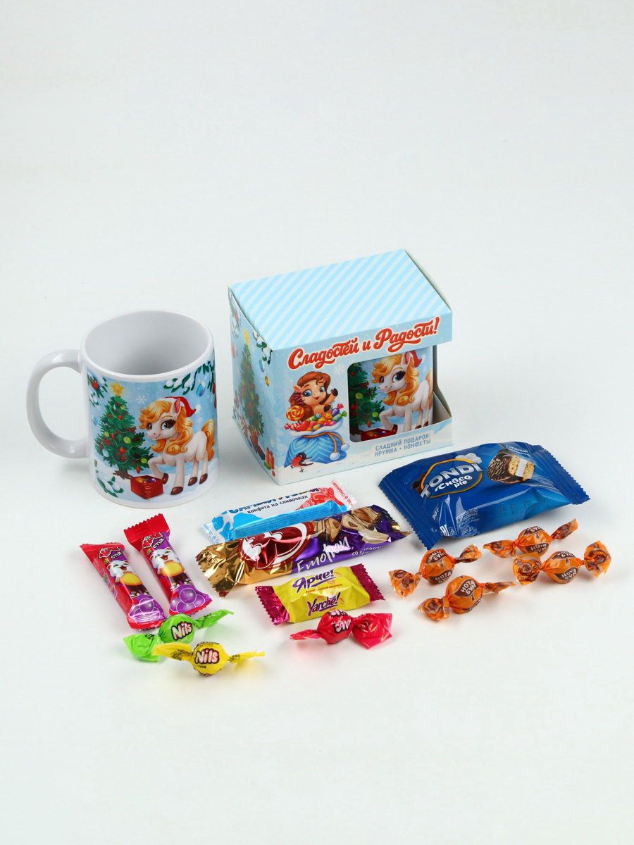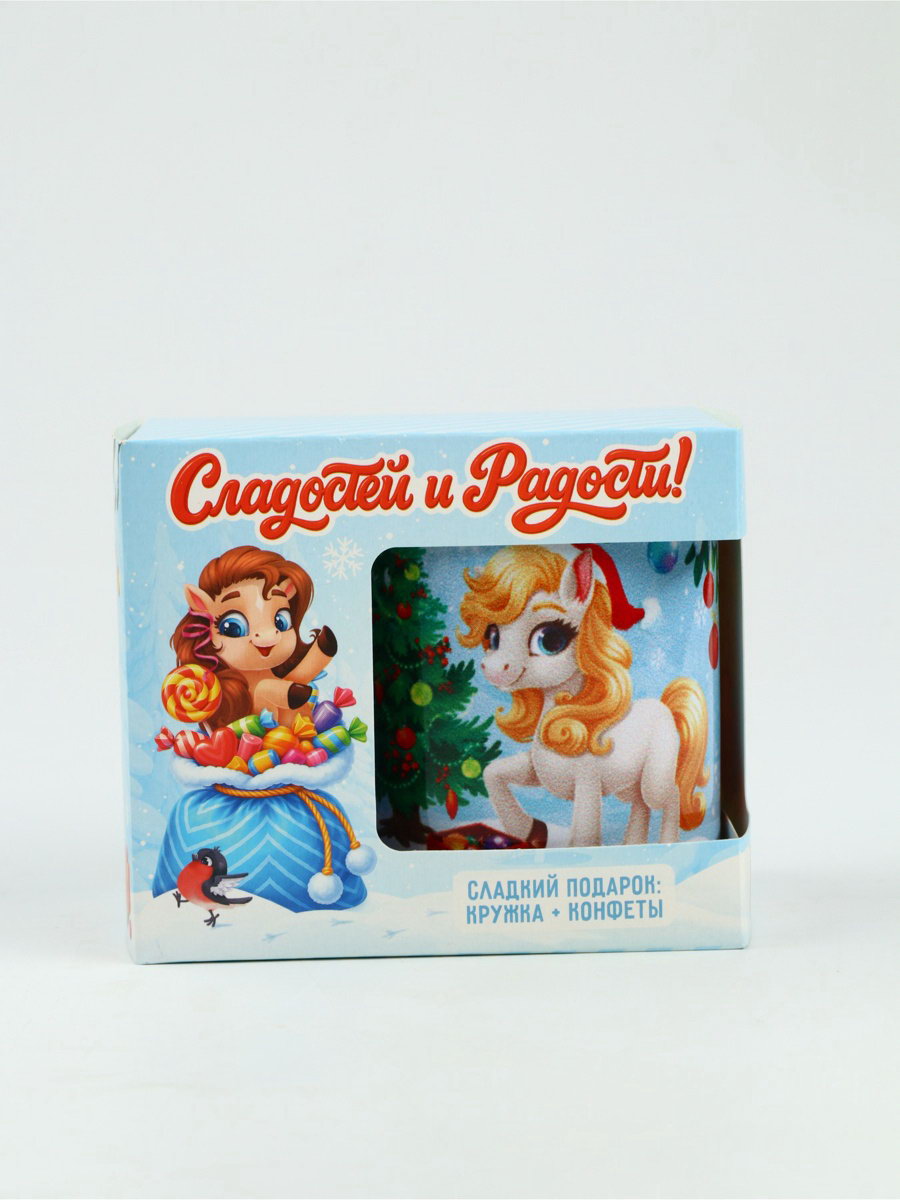 Детский сладкий новогодний подарок "Веселья в новом году": кружка и конфеты, 150 г, Фабрика счастья, Россия