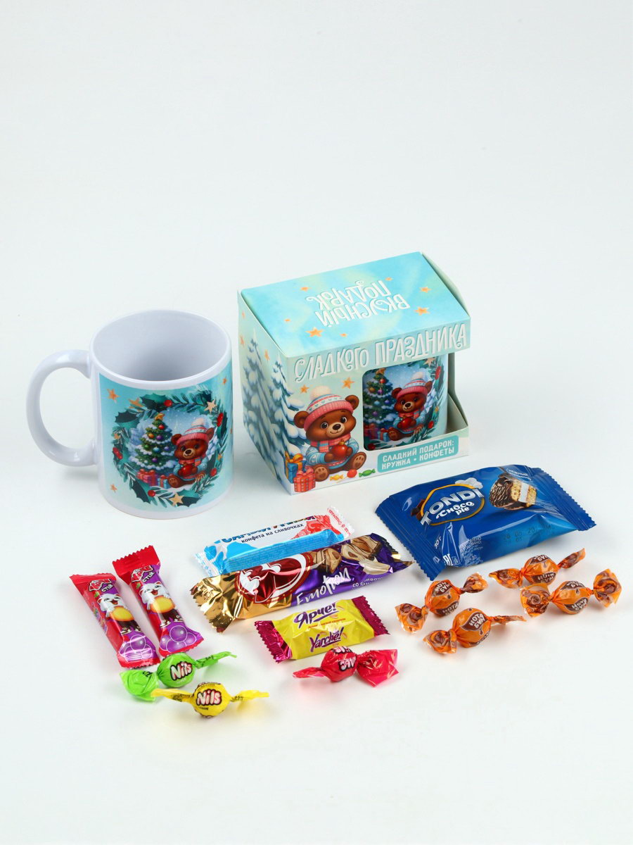 Детский сладкий новогодний подарок "Пусть сбудутся мечты": кружка и конфеты, 150 г, Фабрика счастья, Россия