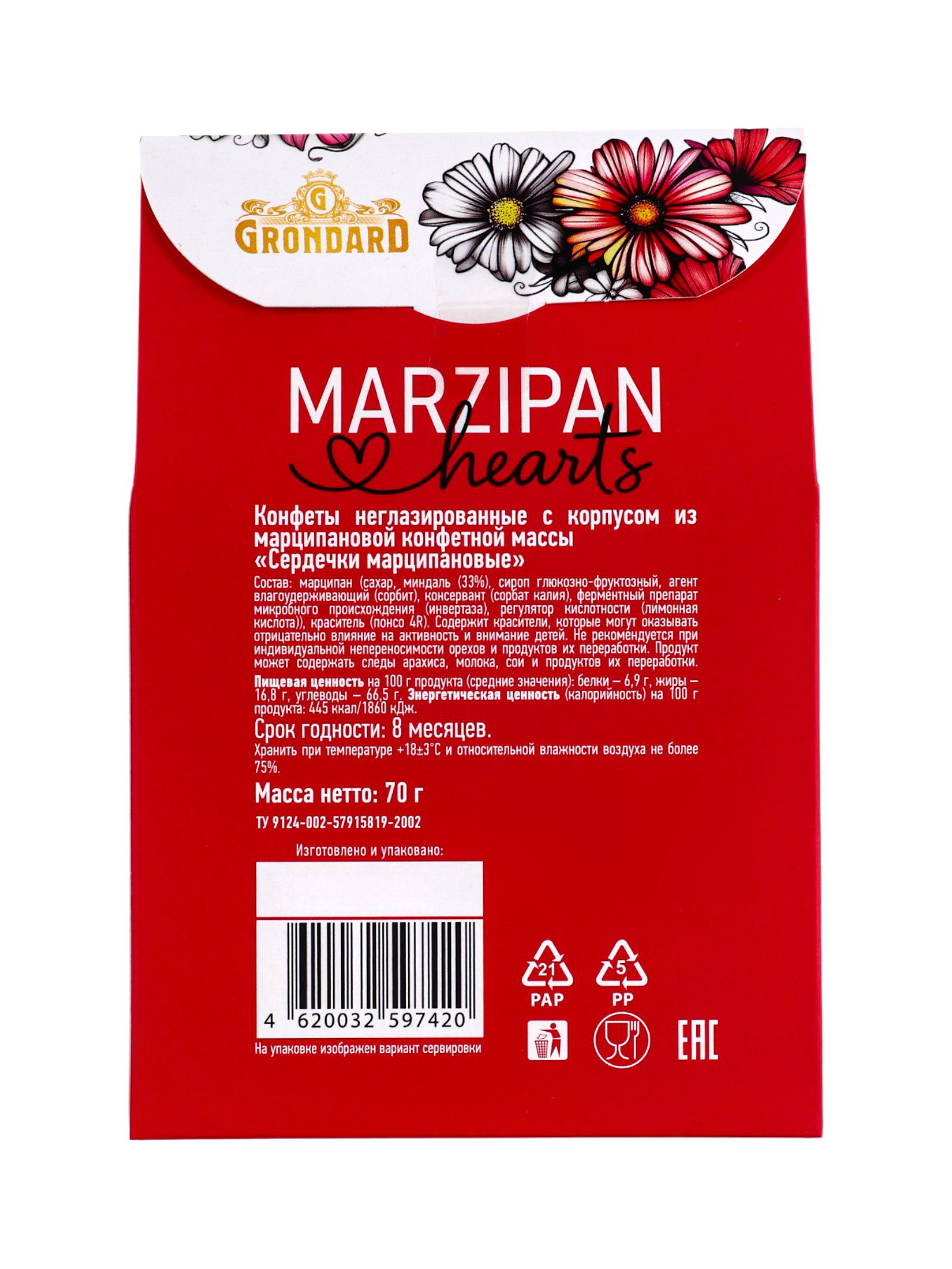 Конфеты неглазированные "Сердечки марципановые", 70 г, Россия