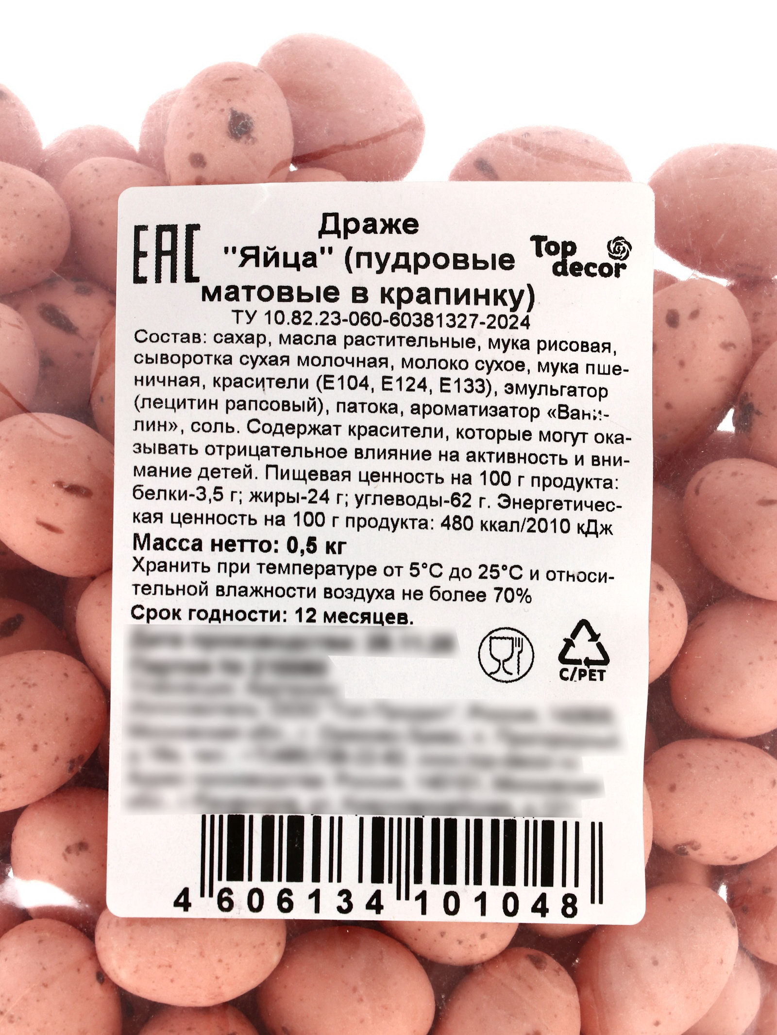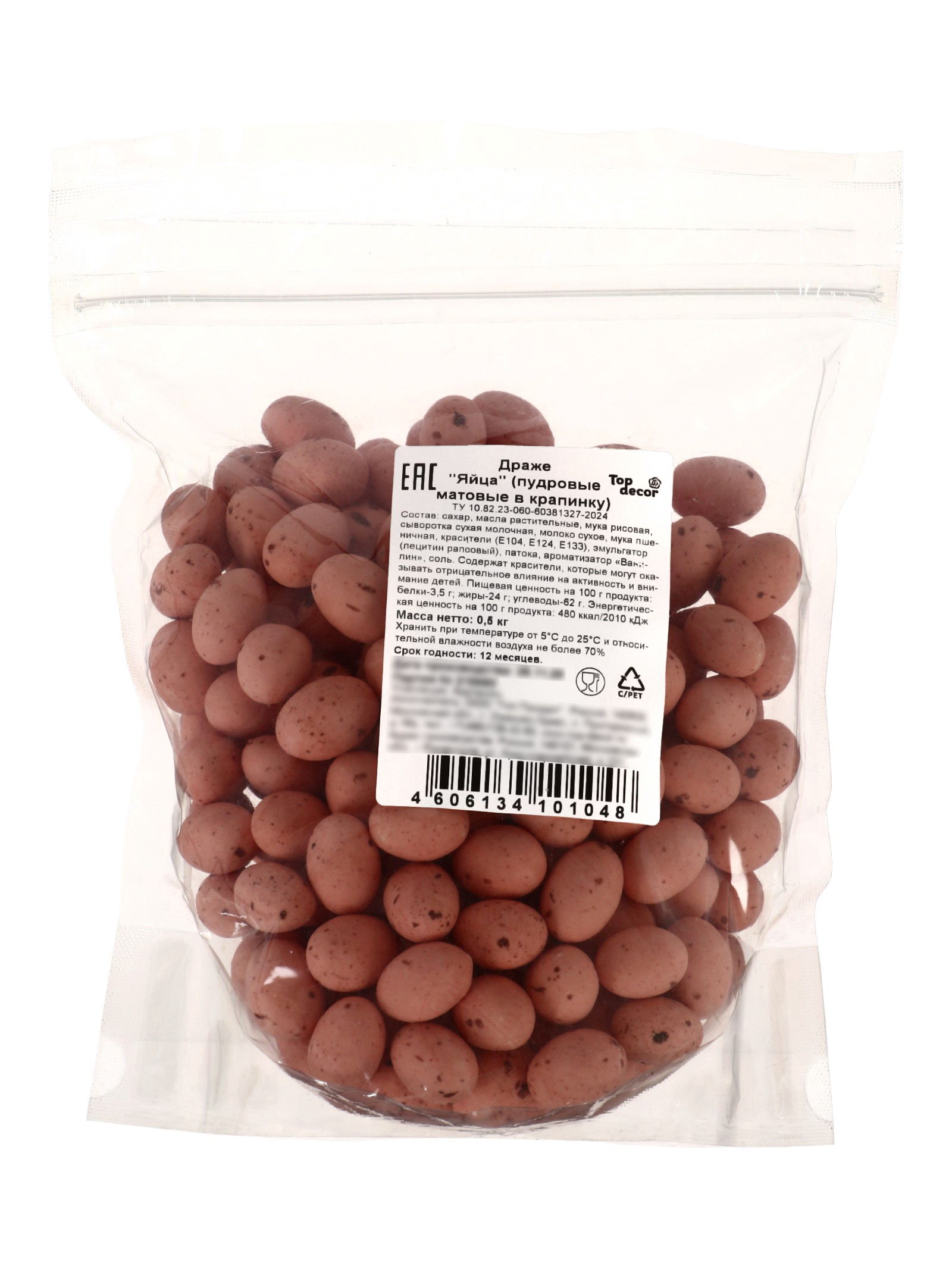 Размер упаковки: 17 x 6 x 20 см. tnved: 1806329000 Продукты: Да Температурное ограничение: Нет Вид: Драже Вес нетто, г: 500 Тематика праздника: Пасха Вид упаковки: Пластиковая упаковка Вкус: Ваниль Пудровые матовые драже-яйца с крапинкой деликатный кондитерский декор для спокойных, выверенных композиций. Приглушённый розово-бежевый оттенок напоминает текстиль пастельных тонов и создаёт ощущение уюта. Такой цвет не спорит с формой десерта, а мягко поддерживает её. Матовая поверхность и лёгкая крапинка добавляют глубину без лишнего блеска. Формат яйца хорошо читается в пасхальной теме, детских десертах и романтичной подаче. Пудровые драже гармонируют с белыми, кремовыми, карамельными и шоколадными элементами, помогая собрать цельный образ. Где и как используют