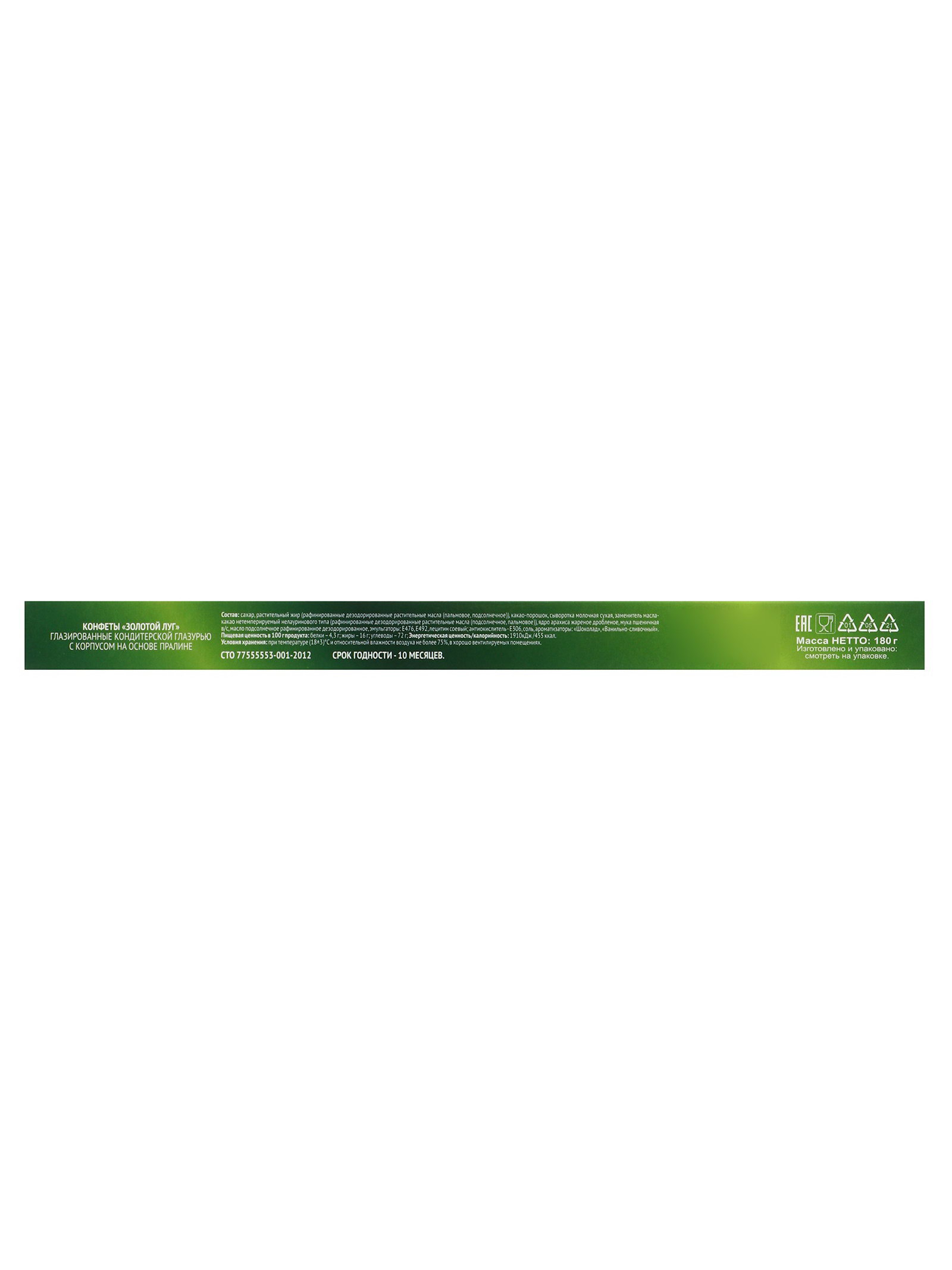 Размер упаковки: 16.5 x 2.5 x 28.5 см. tnved: 1806329000 Продукты: Да Температурное ограничение: Нет Вес нетто, г: 180 Тематика праздника: 8 Марта Вид: Шоколадные Вид упаковки: Коробка картонная Вкус: Шоколад Праздничный набор конфет "Золотой луг" это сладкое воплощение весеннего настроения. Композиция из конфет в яркой упаковке станет тёплым знаком внимания и готовым небольшим подарком к 8 Марта. Особенности подарка