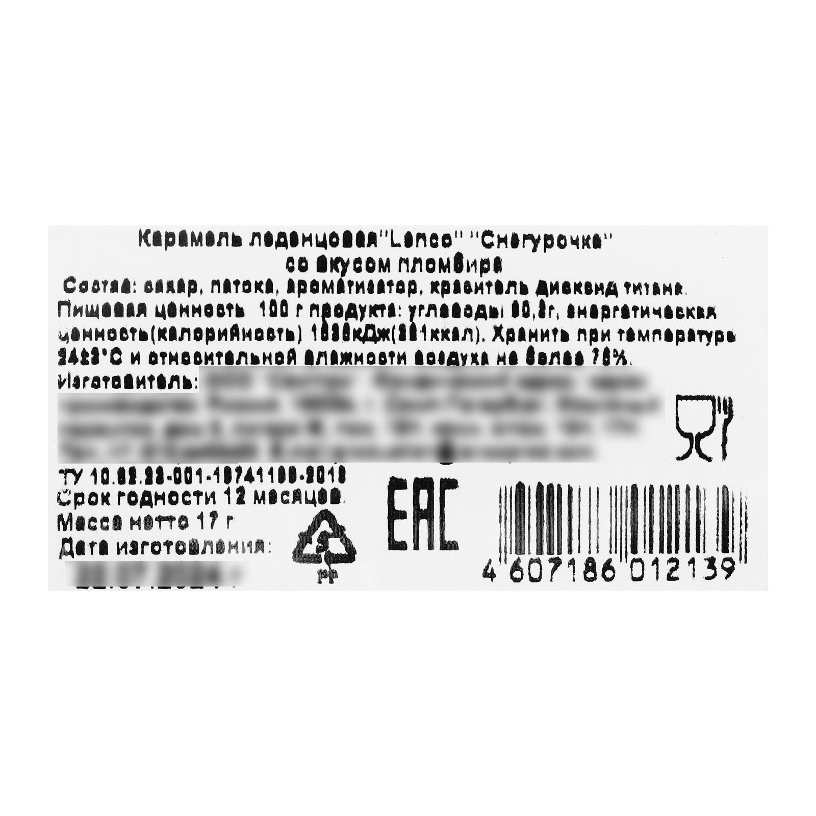 Карамель леденцовая новогодняя "Снегурочка", 17 г, Lenco, Россия