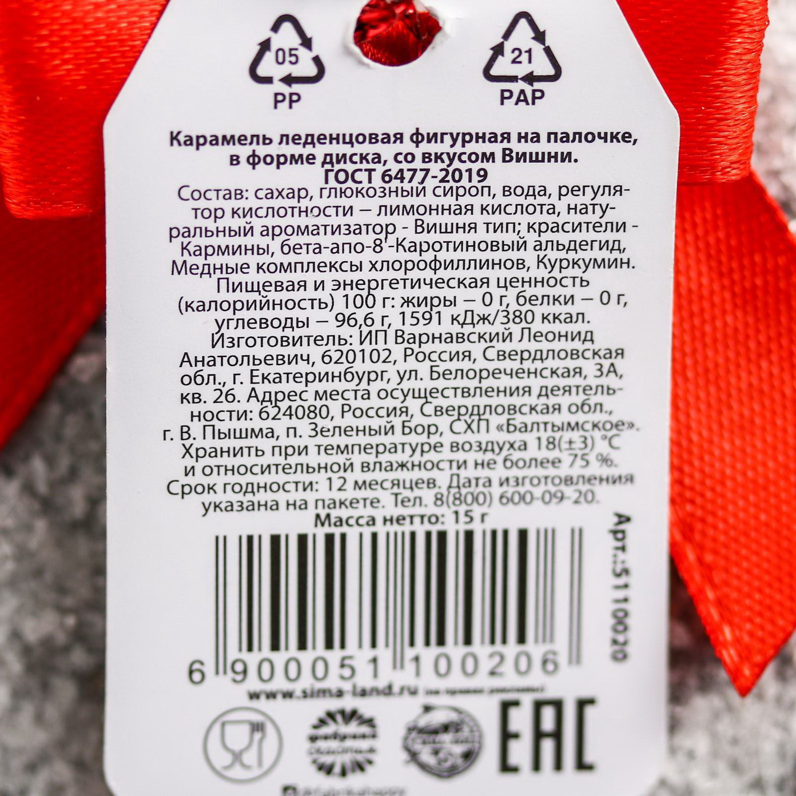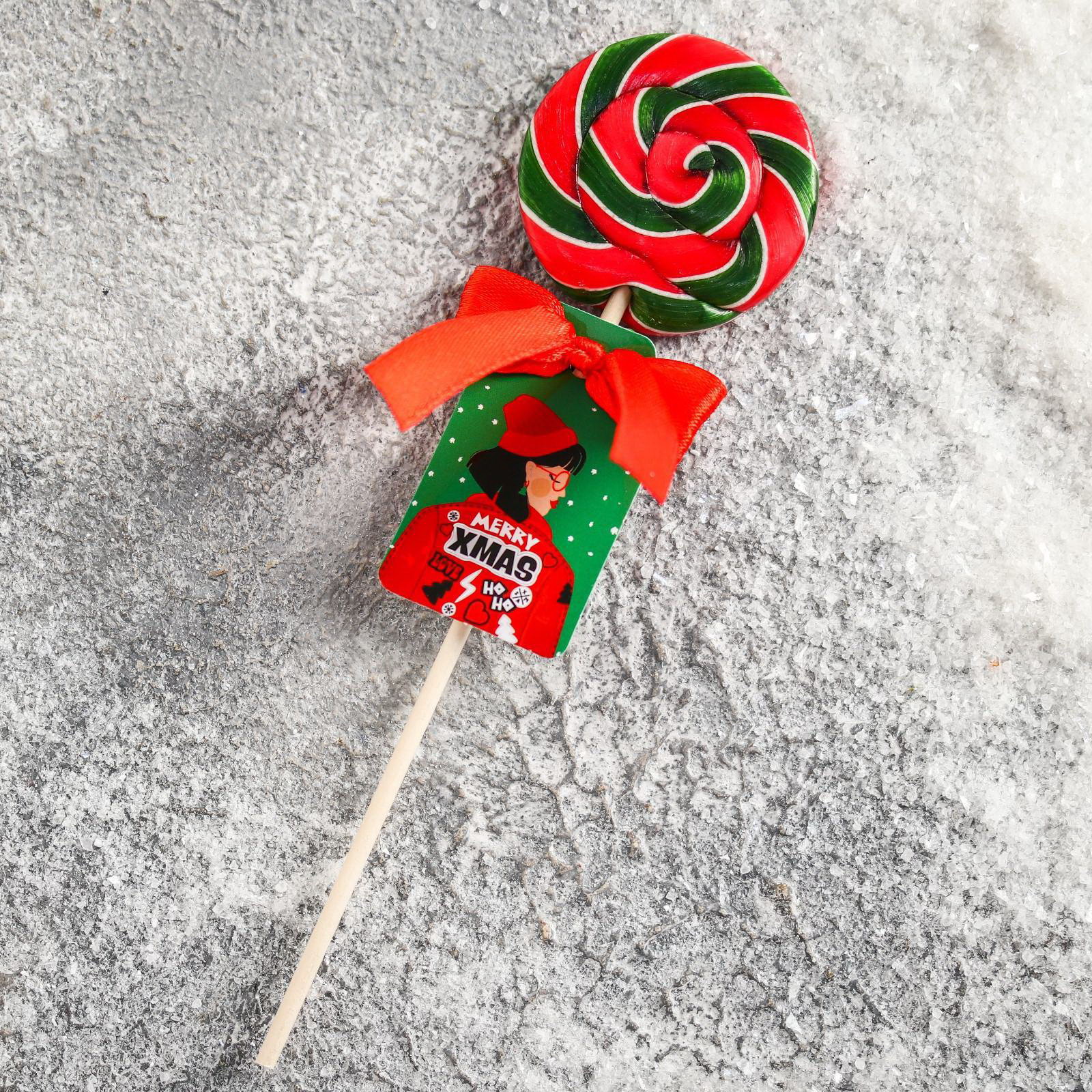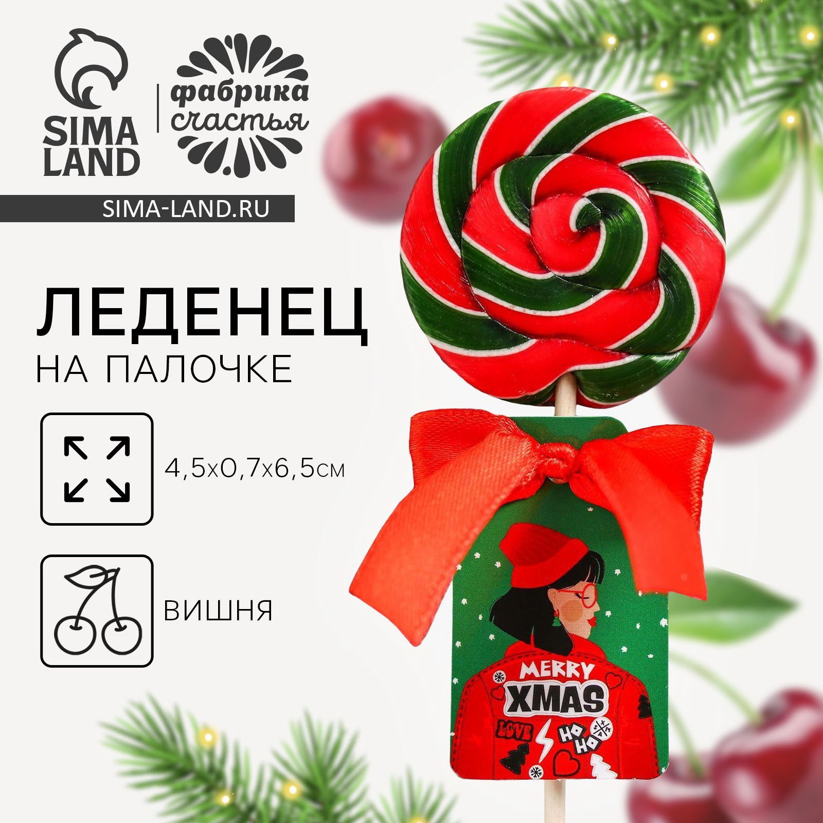Леденец на палочке Merry Xmas, со вкусом вишни, 15 гр, Фабрика счастья, Россия