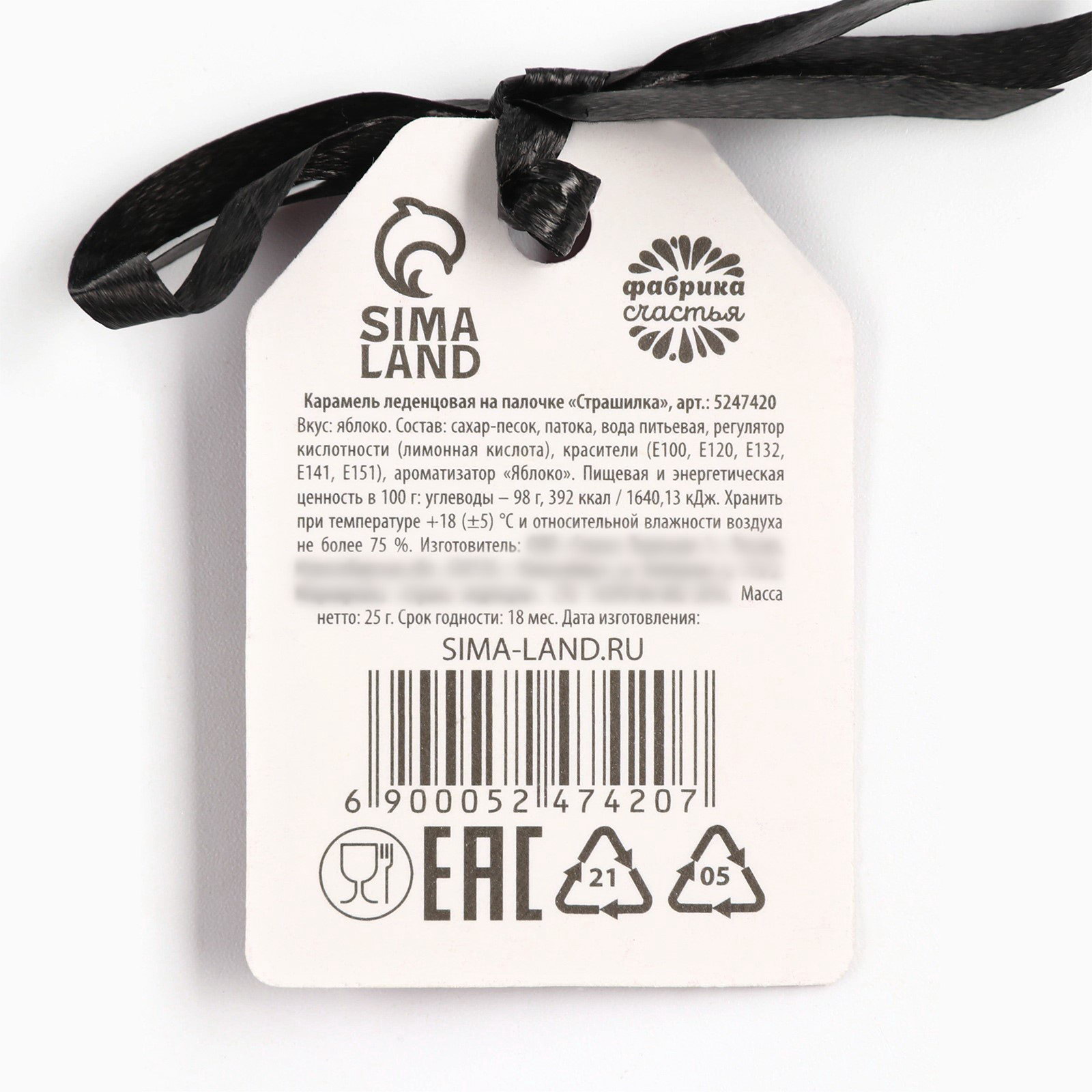 Запрет реализации по сегментам: 00000000266, 00000000593 Размер упаковки: 2 x 2 x 17 см. tnved: 1704907100 Температурное ограничение: Нет Вкус: Тутти-фрутти На палочке: Да Вес нетто, г: 25 Тематика праздника: Хэллоуин ПРИ ОФОРМЛЕНИИ ЗАКАЗА, ПРОСИМ ЗАПРАШИВАТЬ АКТУАЛЬНЫЕ СРОКИ ГОДНОСТИ У МЕНЕДЖЕРА Состав: сахар-песок, патока, вода питьевая, регулятор кислотности (лимонная кислота), красители (Е100, Е120, Е132, Е141, Е151), ароматизатор "Тутти-фрутти". Срок годности: 18 месяцев Масса нетто: 25 гр | ||