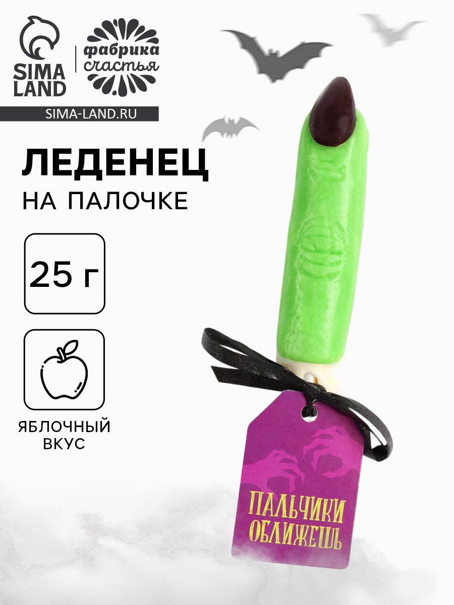 Леденец на палочке на Хэллоуин "Пальчики оближешь", вкус: яблоко, 25 г, Фабрика счастья, Россия