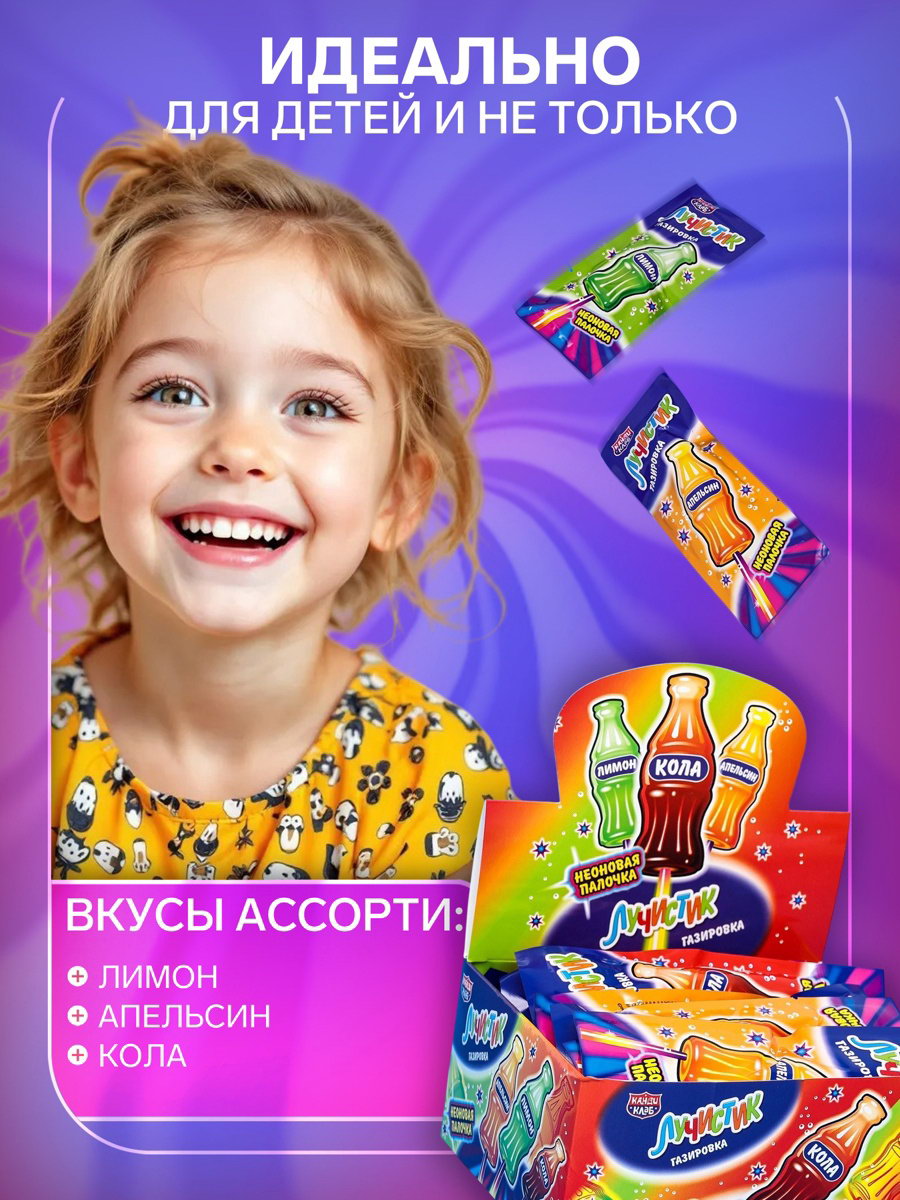 Карамель на неоновой палочке "Лучистик", газировка, 10 г, Канди клаб, Китай