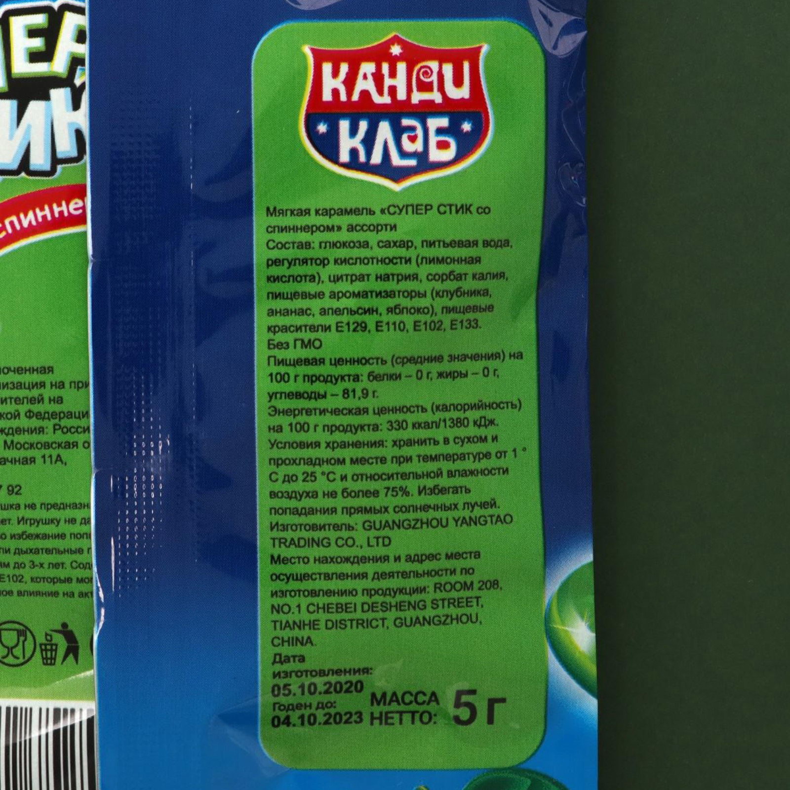 Мягкая карамель "Супер стик со спиннером", 5 г, Канди клаб, Китай