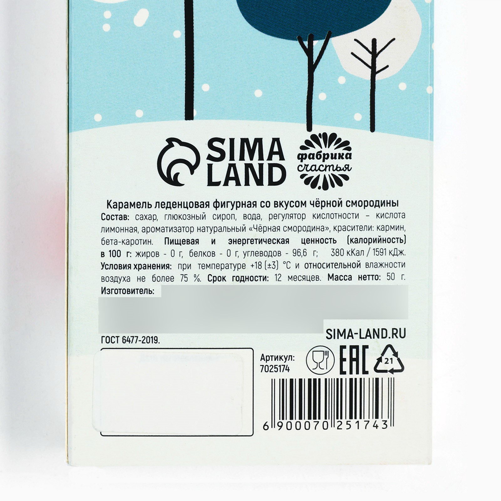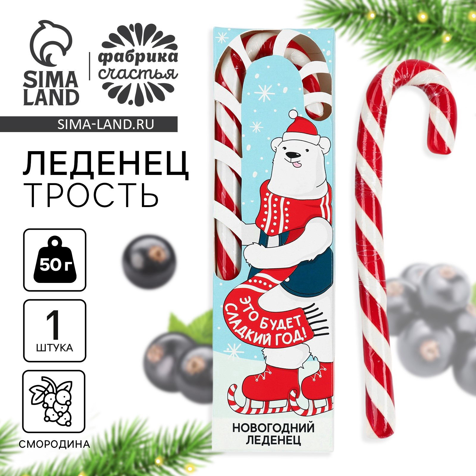 Леденец-трость "Год без забот", вкус: смородина, 50 гр, Фабрика счастья, Россия