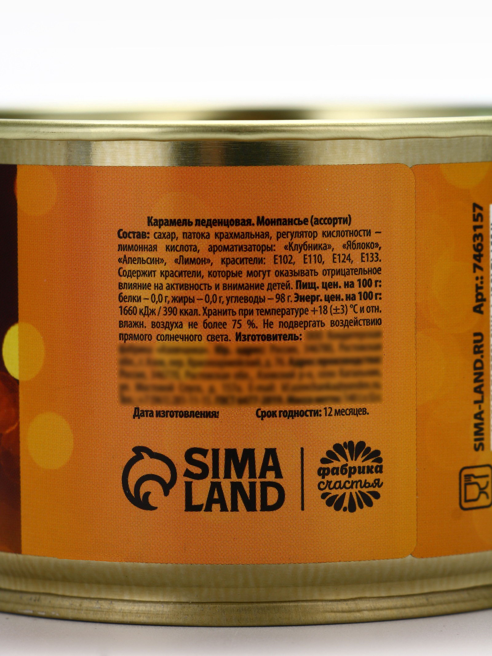 Монпансье, карамель леденцовая в консервной банке, 140 г, Фабрика счастья, Россия