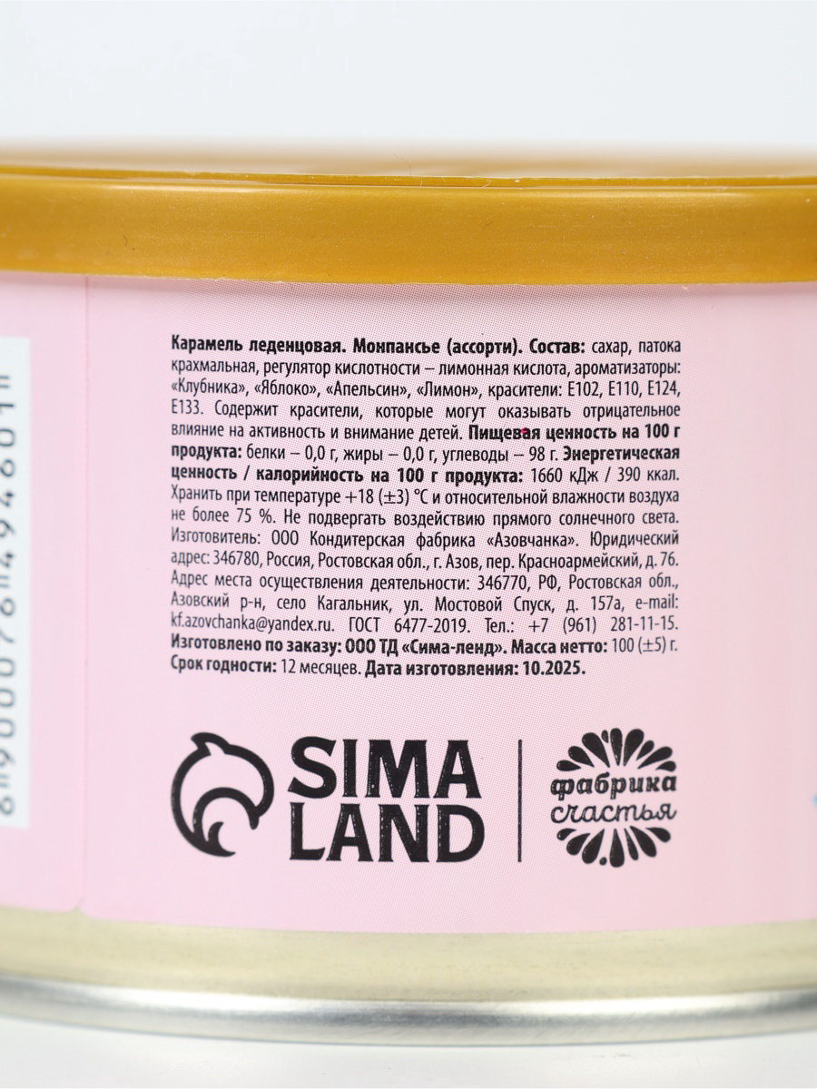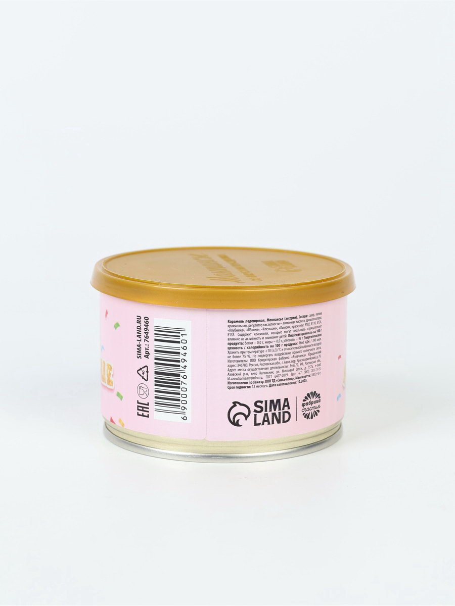 Монпансье "Моё золотце", карамель леденцовая в консервной банке, 140 г, Дарим Красиво, Россия