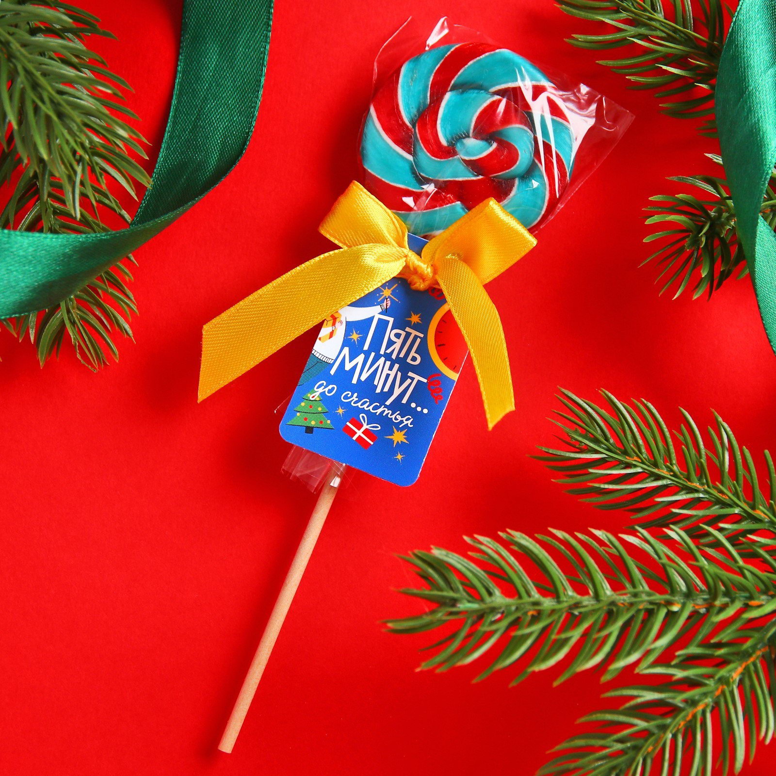 Леденец новогодний на палочке "Пять минут до счастья", вкус: грейпфрут-гуава, 15 г, Фабрика счастья, Россия