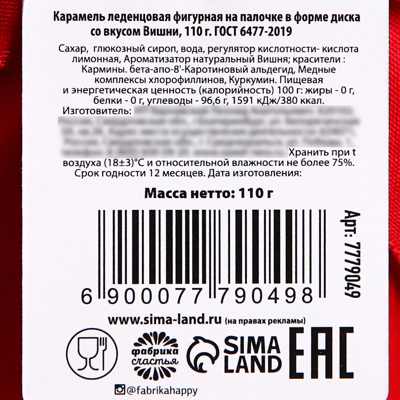 Леденец новогодний на палочке "Почувствуй вкус праздника", вкус: вишня, 110 гр, Фабрика счастья, Россия