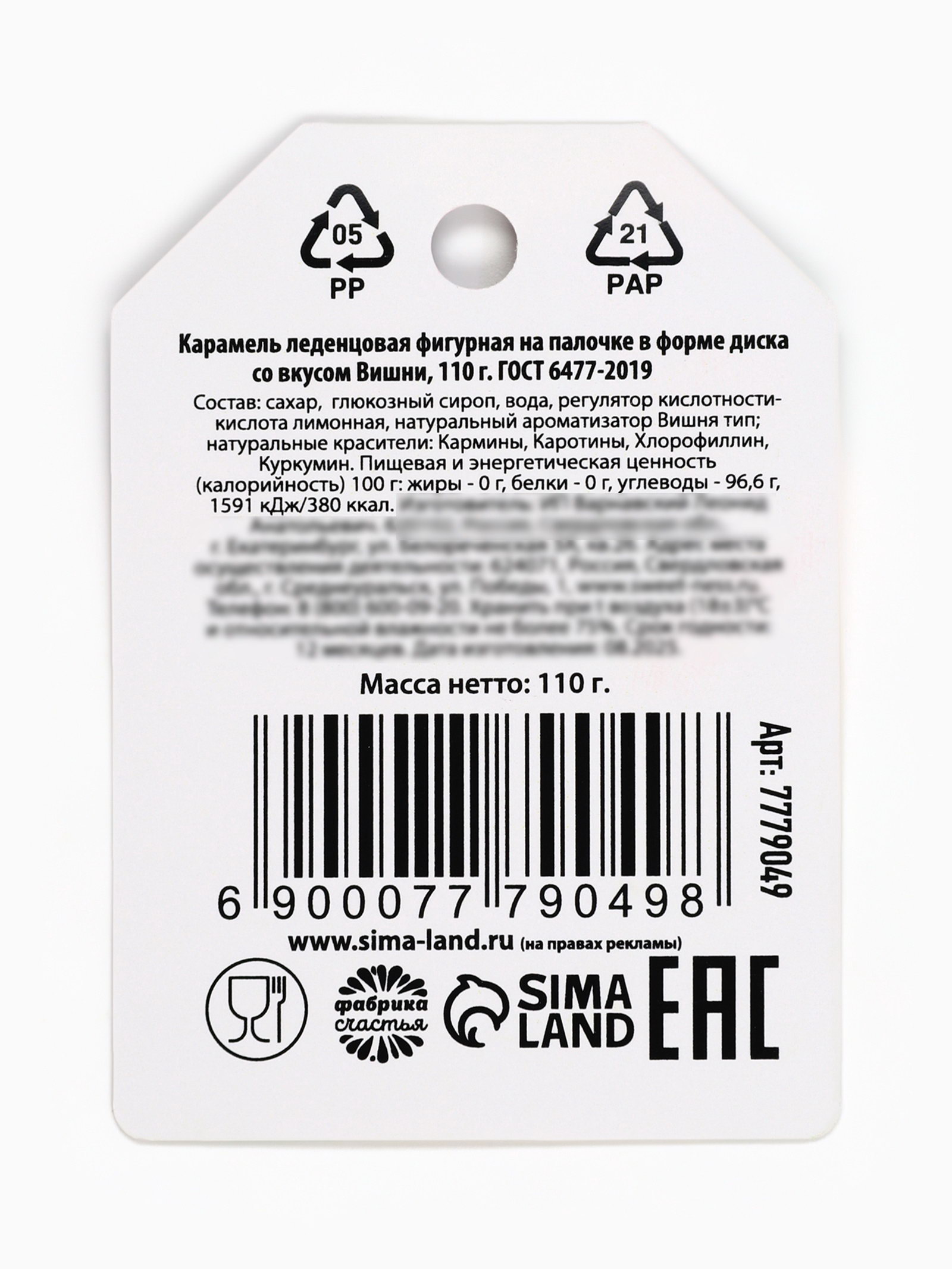 Запрет реализации по сегментам: 00000000266, 00000000593 Размер упаковки: 11 x 17 x 1.2 см. Символ года: Нет Символ года: Нет tnved: 1704907100 Новогодняя коллекция: Новый год Набор: Нет Температурное ограничение: Нет Вес нетто, г: 110 На палочке: Да Вкус: Вишня Тематика праздника: Новый год ПРИ ОФОРМЛЕНИИ ЗАКАЗА, ПРОСИМ ЗАПРАШИВАТЬ АКТУАЛЬНЫЕ СРОКИ ГОДНОСТИ У МЕНЕДЖЕРА Состав: сахар, глюкозный сироп, вода, регулятор кислотности - лимонная кислота, натуральный ароматизатор Вишня, красители: Кармины, бета-апо-8'-Каротиновый альдегид, Медные комплексы хлорофиллов, Куркумин. Срок годности: 12 месяцев Масса нетто: 110 гр | ||