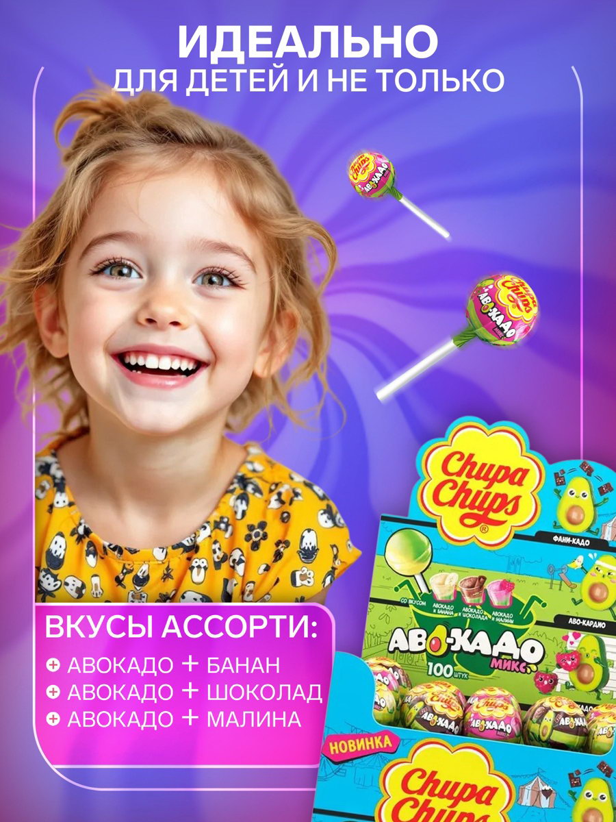 Карамель Chupa-Chups авокадо-смузи, микс, 12 г, Chupa Chups, Россия