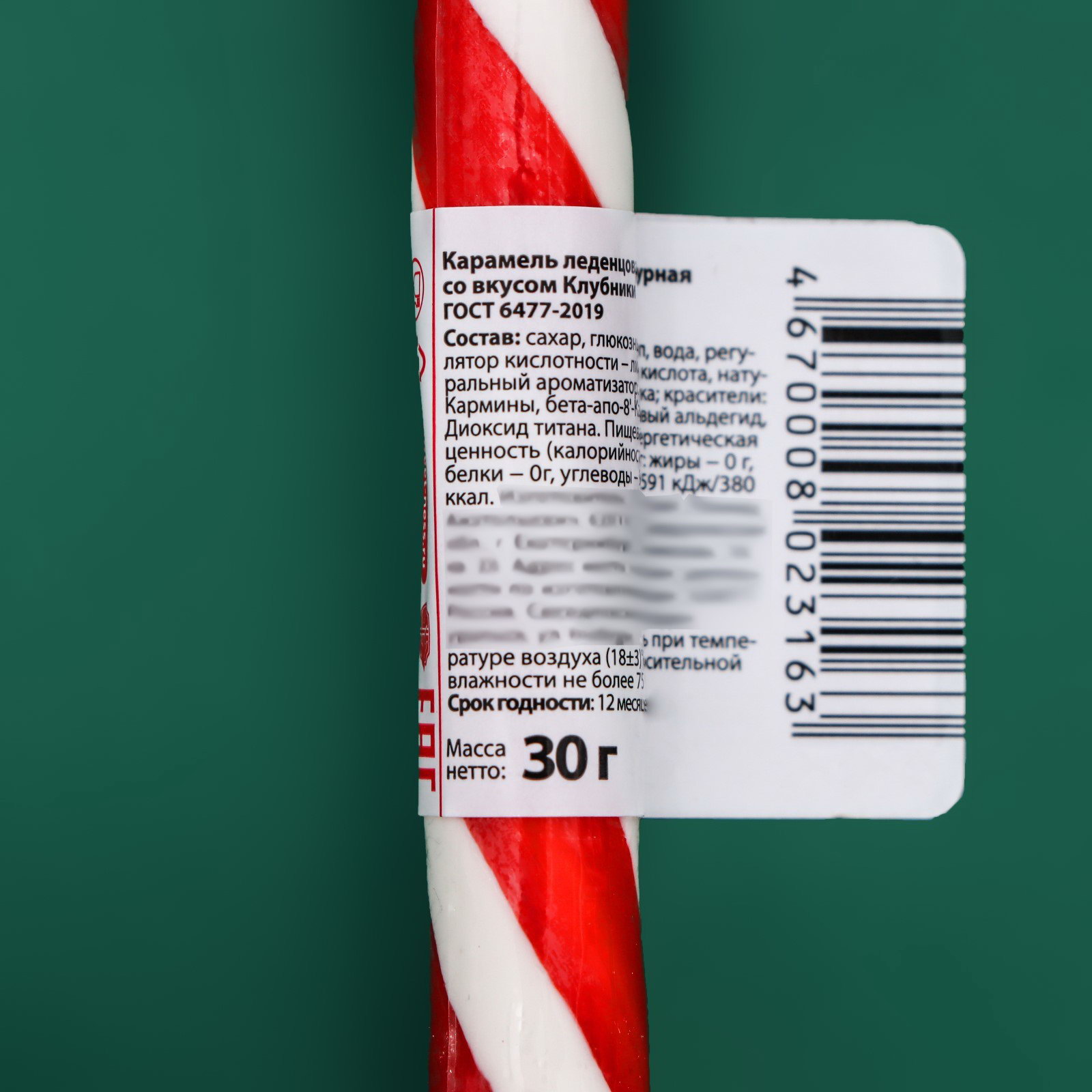 Карамель леденцовая новогодняя "Трость", со вкусом клубники, 30 г, Sweet Ness, Россия