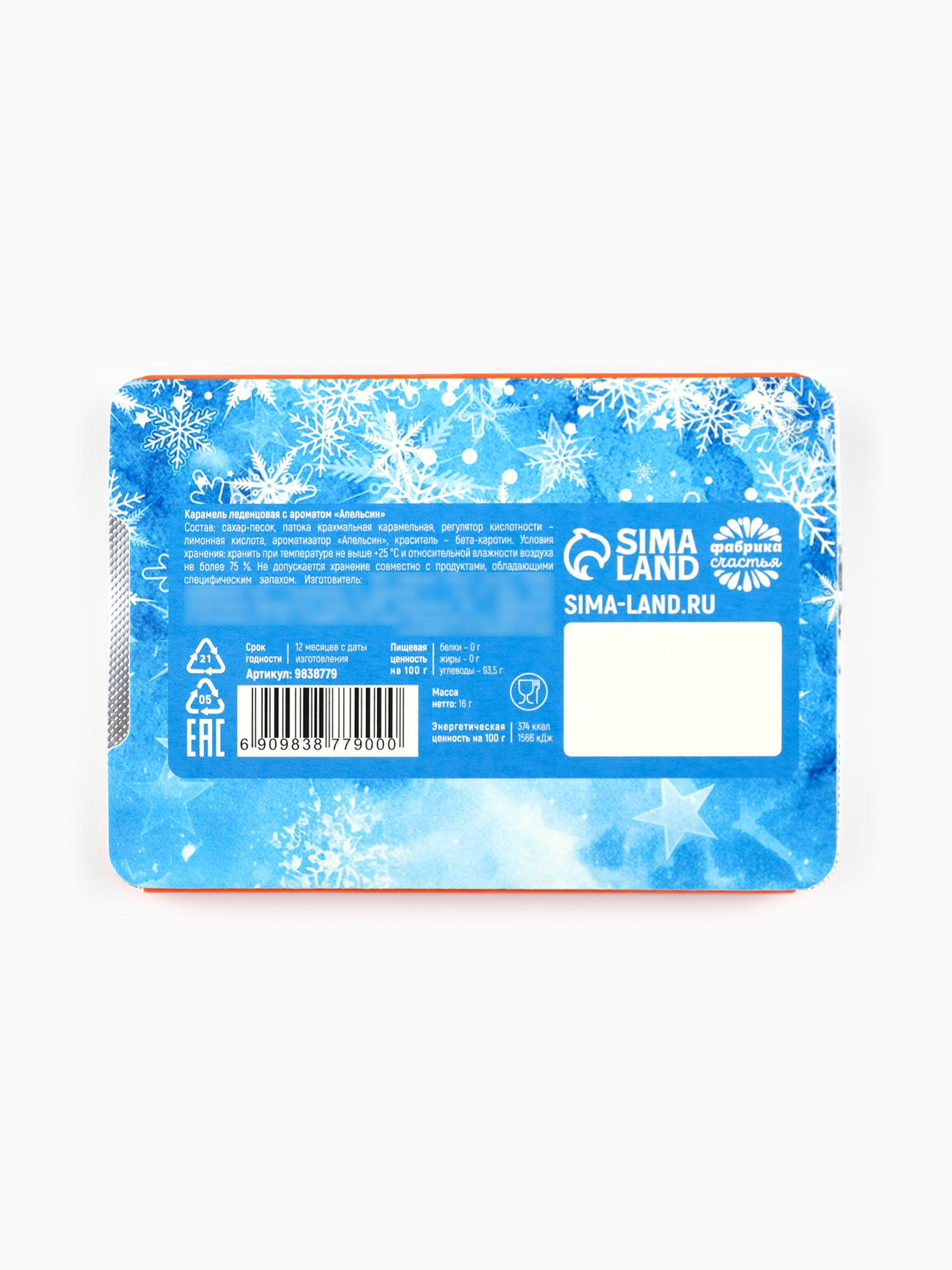 Леденцы новогодние "Веселого нового года", со вкусом апельсина, 16 г, Фабрика счастья, Россия