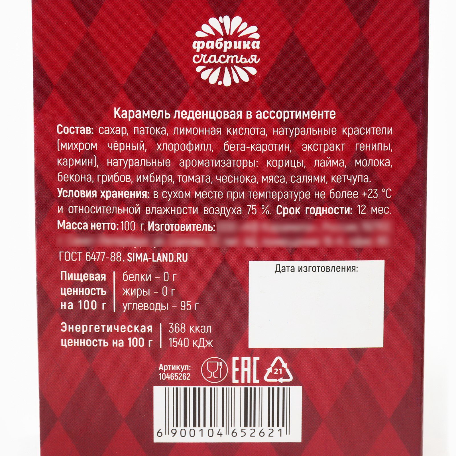 Леденцы с гадкими вкусами "Шляпа", 100 г, Фабрика счастья, Россия