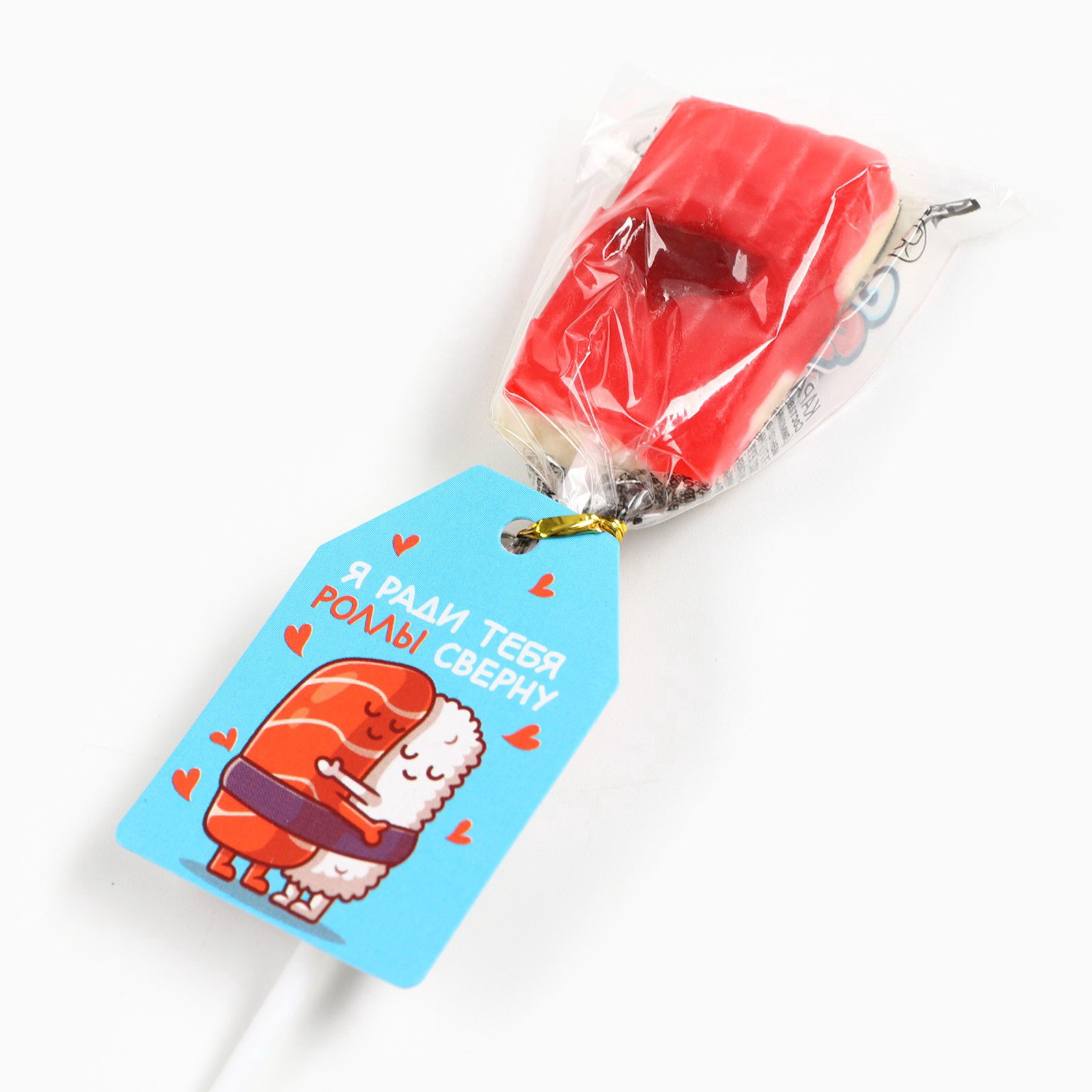Леденец на палочке "Ради тебя роллы сверну", вкус: мультифрукт, 15 гр, Фабрика счастья, Россия