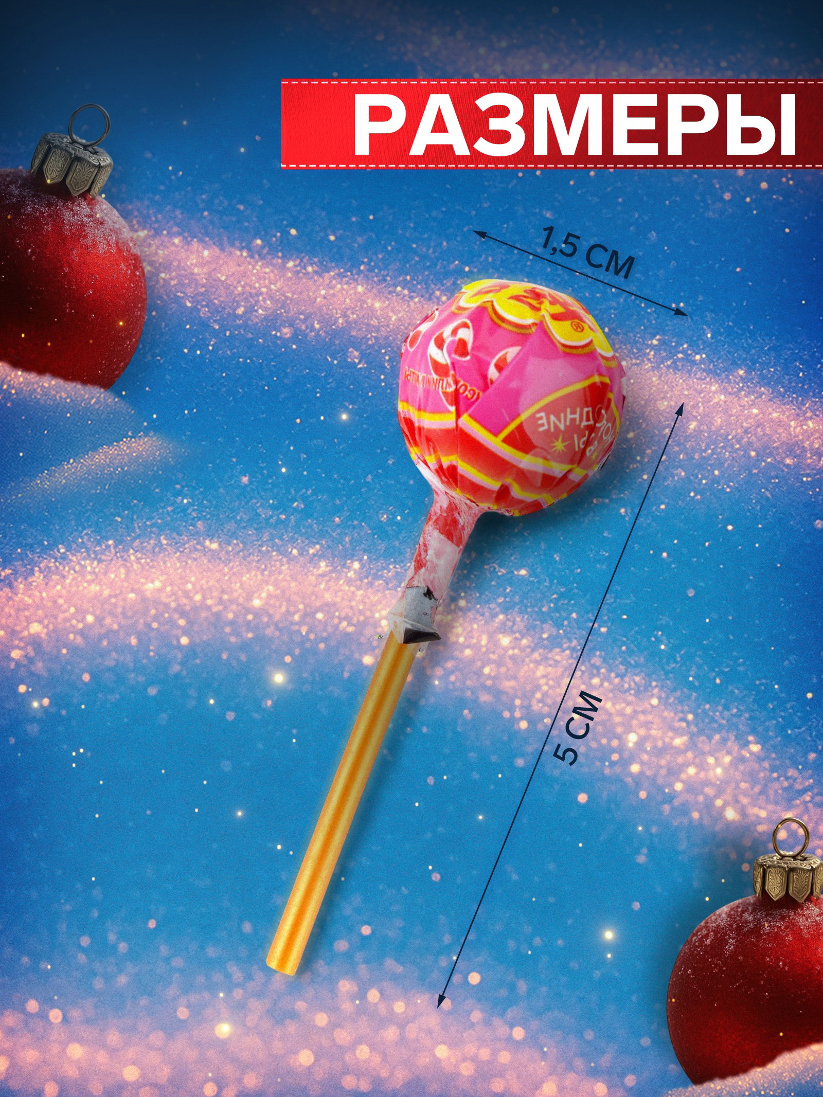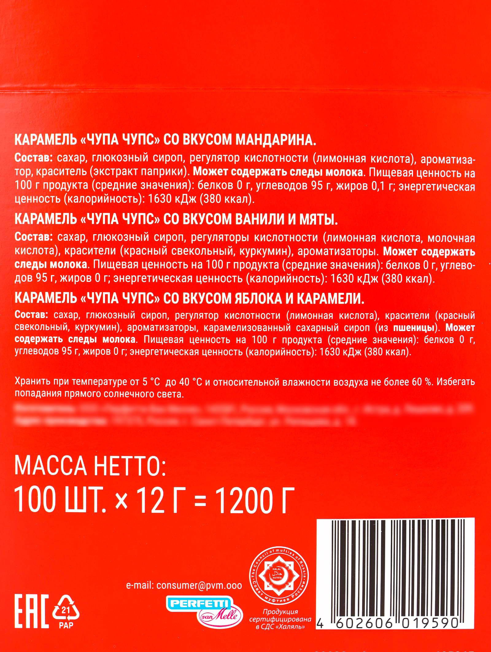 Вкус: Ваниль, Карамель, Мандарин, Мята, Яблоко Тематика праздника: Новый год, Рождество Новогодняя коллекция: Новый год, Рождество Размер упаковки: 1.5 x 1.5 x 5 см. tnved: 1704907100 Продукты: Да Температурное ограничение: Нет На палочке: Да Вес нетто, г: 12 Пять вкусов в одном леденце! Леденец Chupa-Chups на палочке это карамель с многослойным вкусом мандарина, ванили, мяты, яблока и карамели. Классический формат на палочке удобно держать в руках и наслаждаться вкусом.