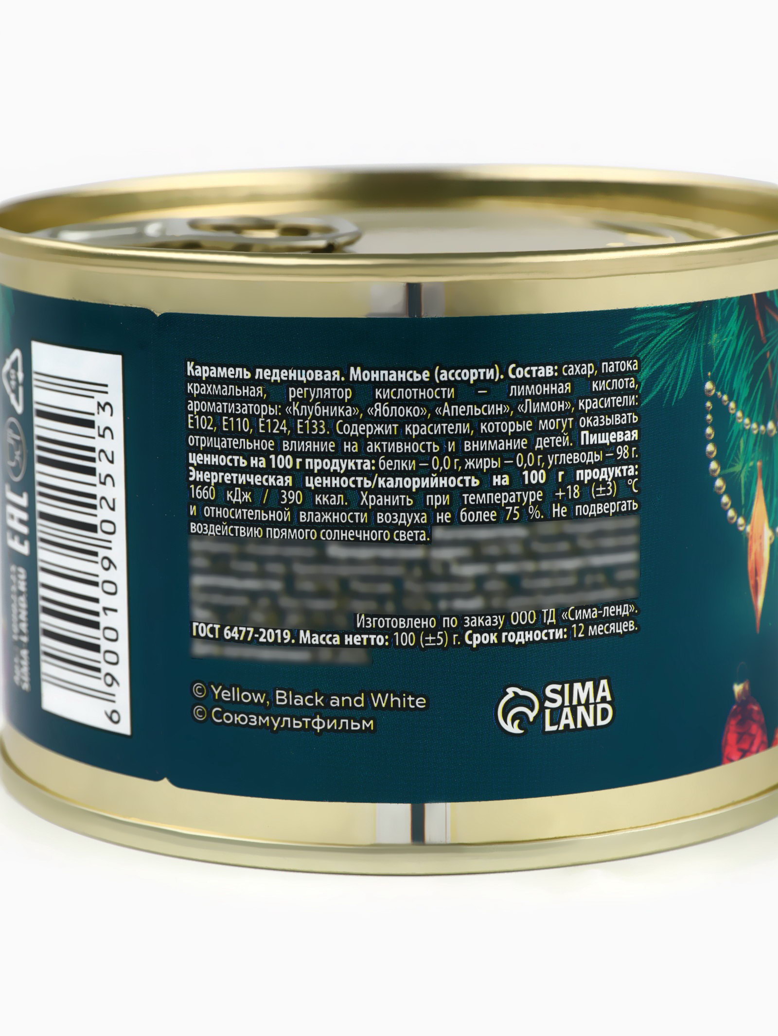 Леденцы монпансье в консервной банке "С Новым годом", Чебурашка, ЧЕБУРАШКА, Россия