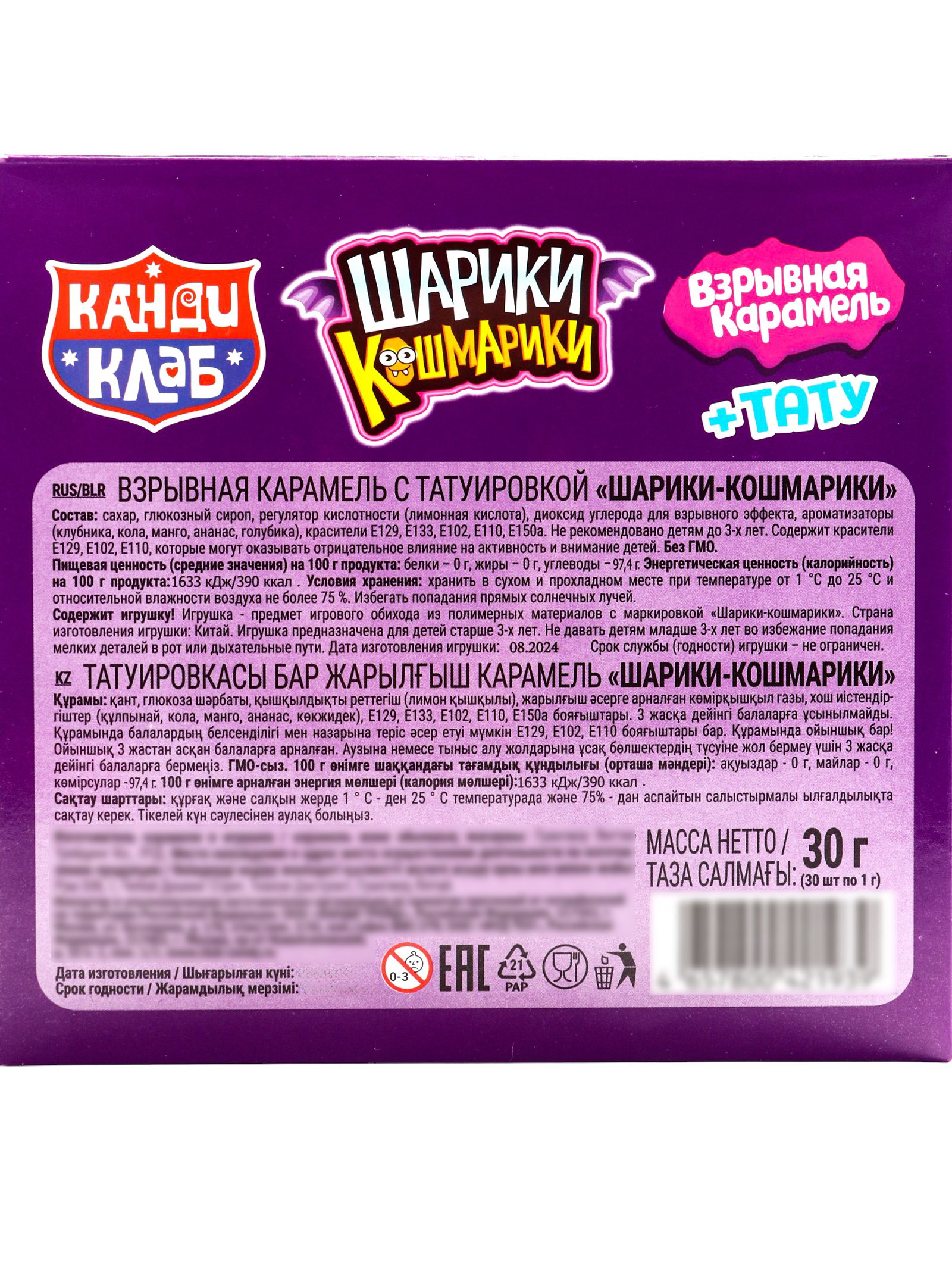 Взрывная карамель "Шарики-кошмарики", с игрушкой и татуировкой, 1 г, Китай