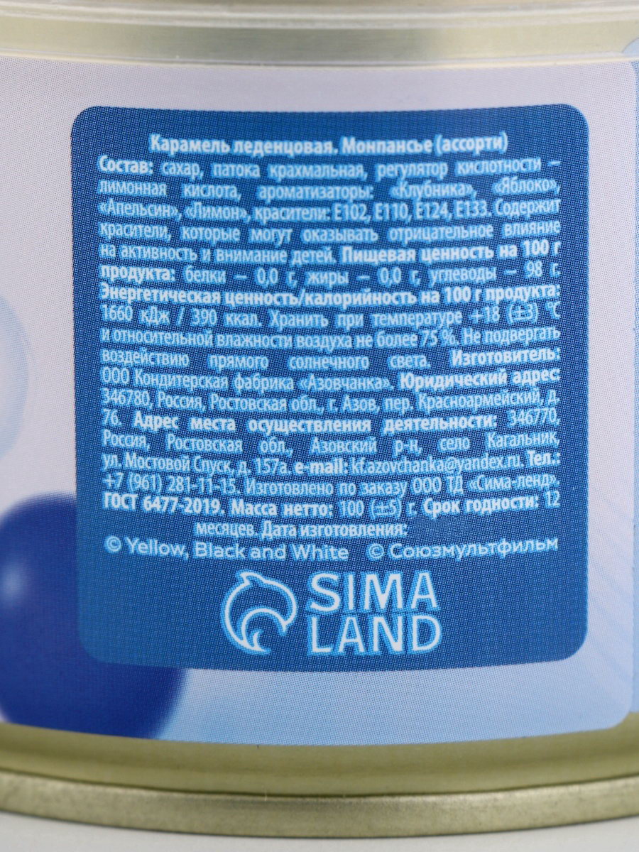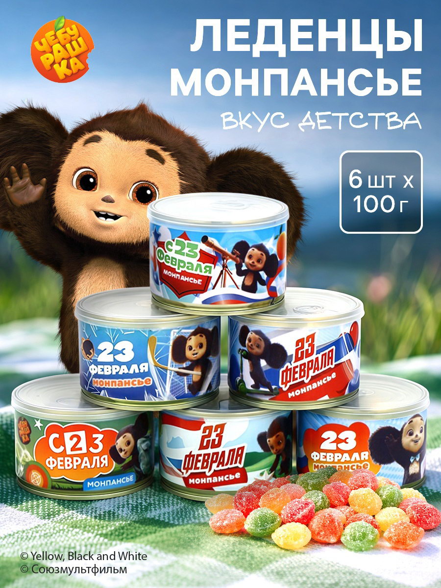 Леденцы монпансье в консервной банке "Чебурашка. 23 февраля", 6 шт., ЧЕБУРАШКА, Россия