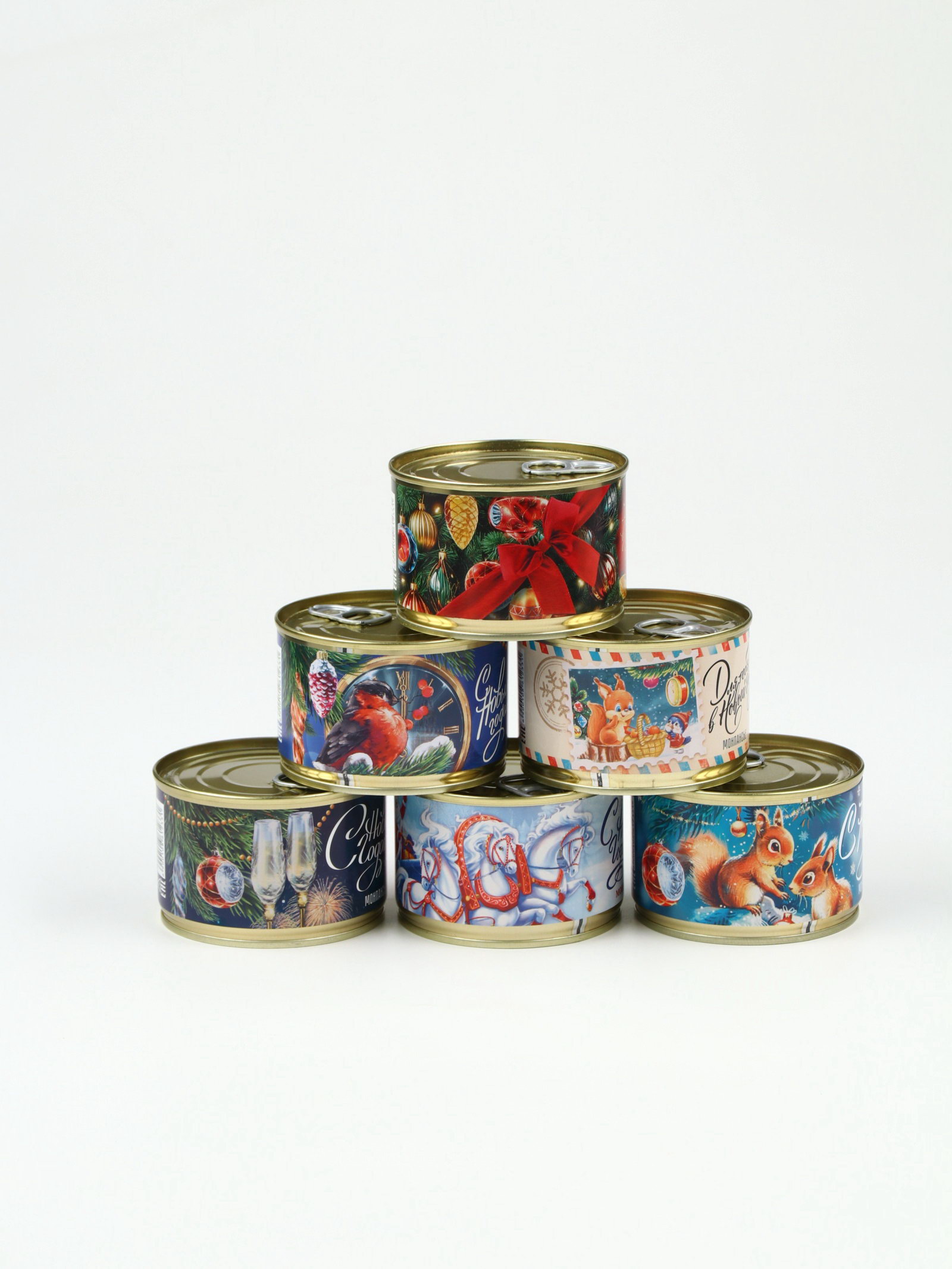 Леденцы монпансье в консервной банке "Новый год!" 6 штук, Фабрика счастья, Россия