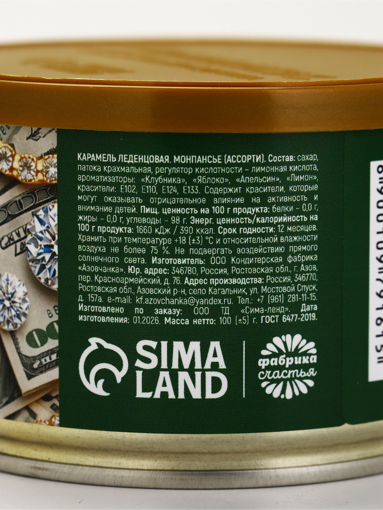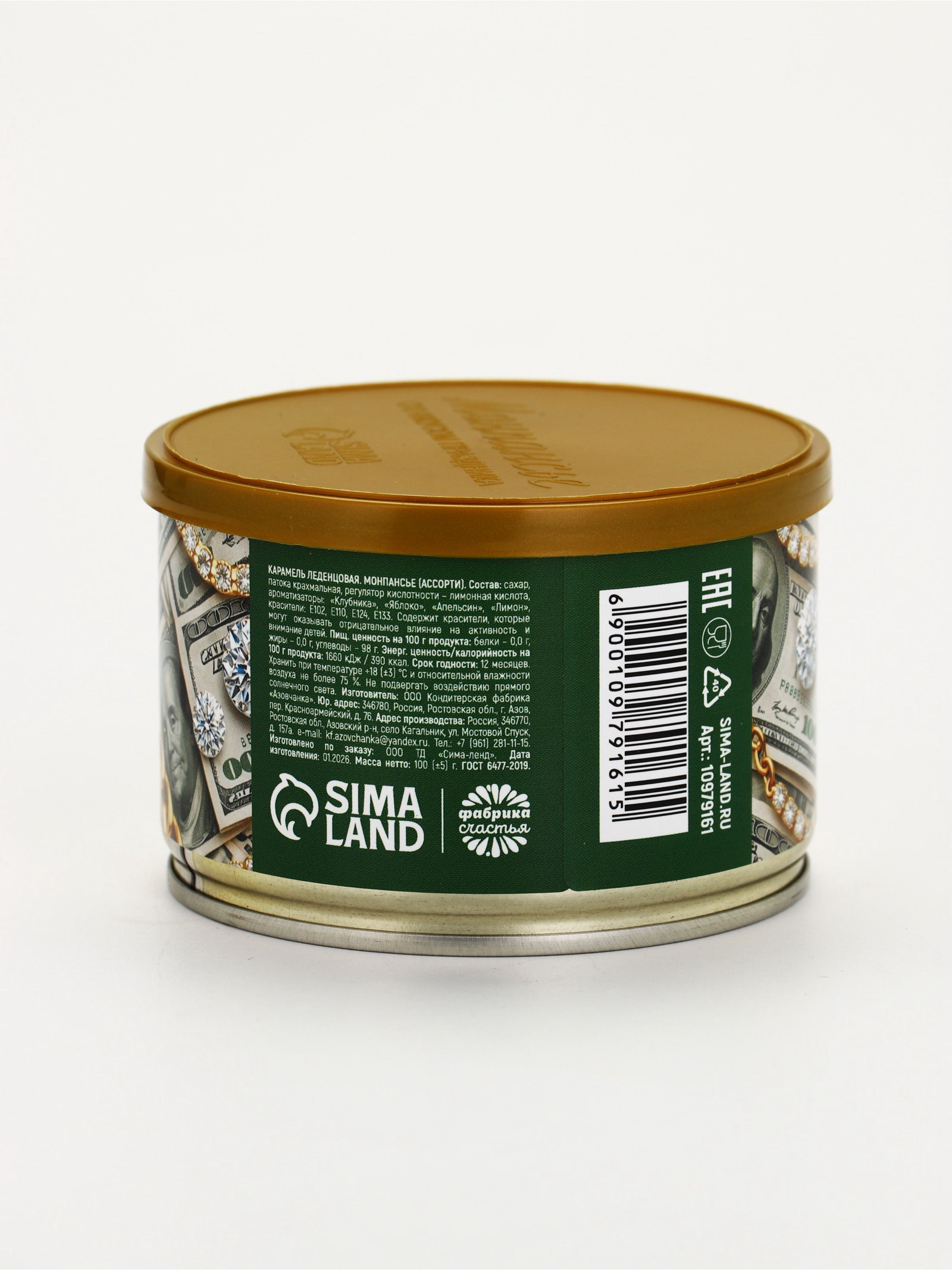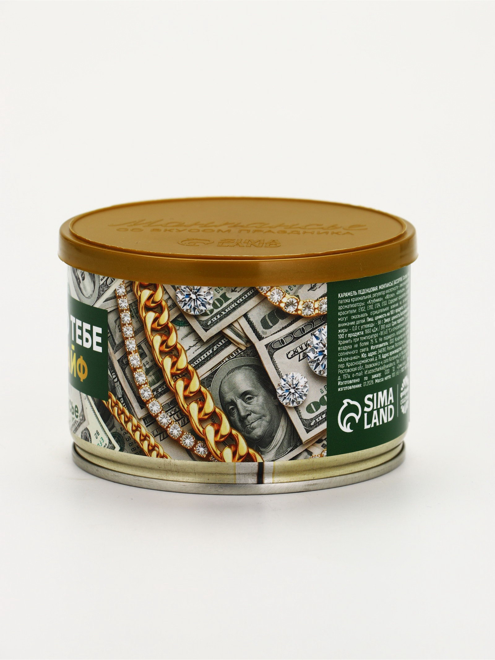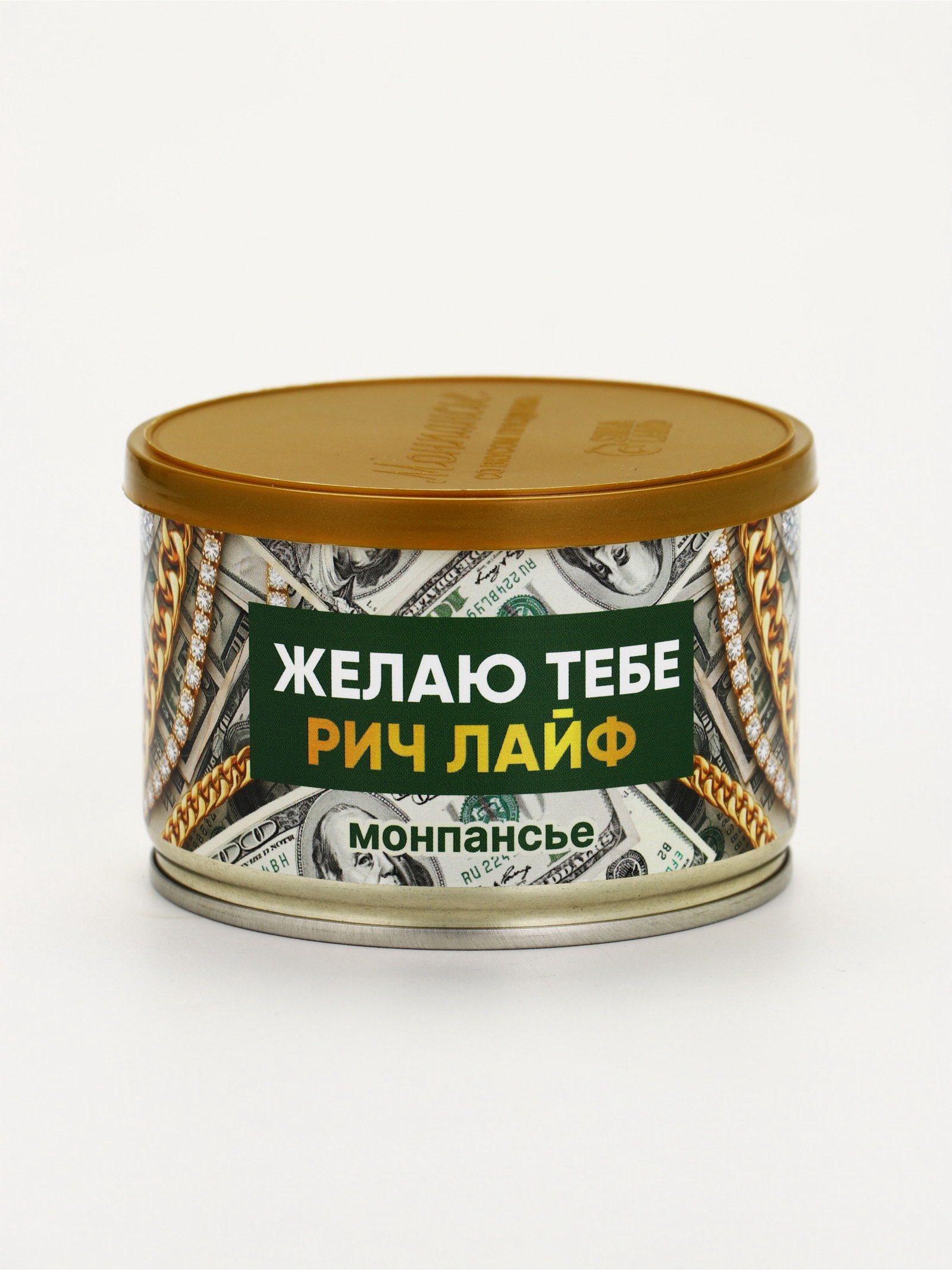 Монпансье в консервной банке "Желаю тебе рич лайф", 100 г, Фабрика счастья, Россия