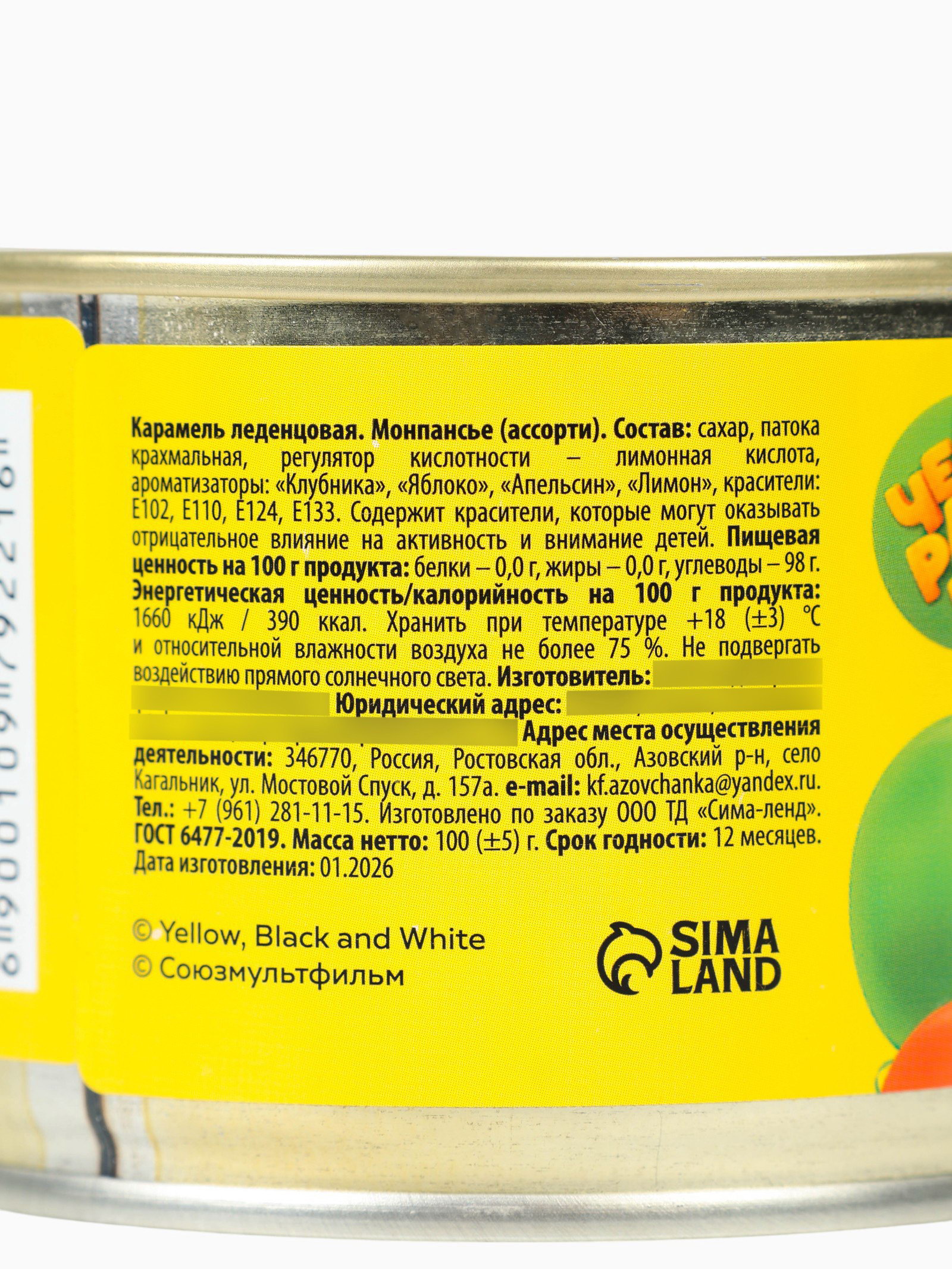 Леденцы монпансье в консервной банке "С шариками", 100 г, ЧЕБУРАШКА, Россия