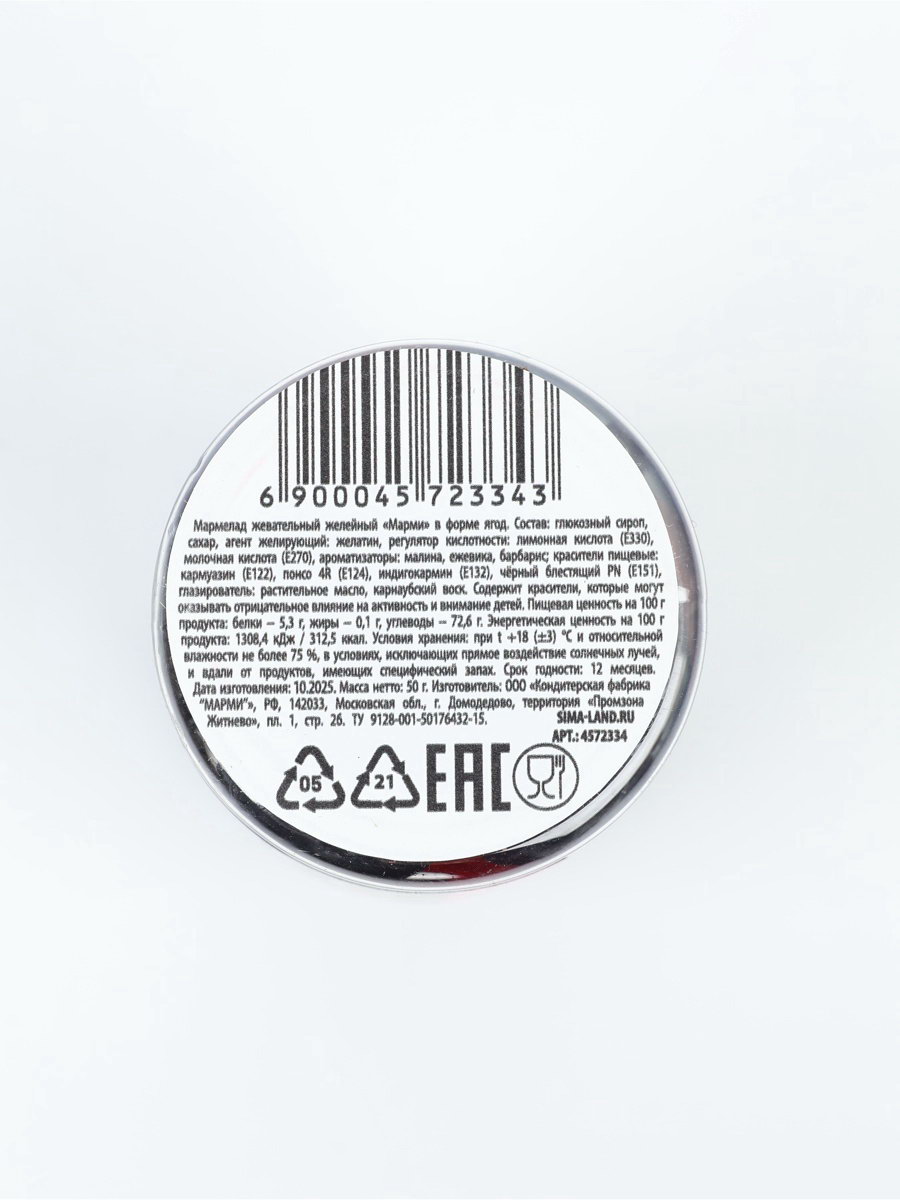 Запрет реализации по сегментам: 00000000266, 00000000593 Размер упаковки: 4 x 6 x 4 см. Темпер. ограничение НЕ ВЫШЕ ℃: +18 Тематика подарка: Продукты питания Вкус: Фруктовый микс tnved: 1704906500 Температурное ограничение: Нет Вес нетто, г: 50 Тематика праздника: 8 Марта Вид: Жевательный При оформление заказа, просим запрашивать актуальные сроки годности у менеджераСостав: глюкозный сироп, сахар, агент желирующий – желатин, регулятор кислотности – лимонная кислота (Е330), ароматизаторы: "Малина", "Ежевика", "Барбарис", красители пищевые: кармуазин (Е122), понсо 4R (Е124), индигокармин (Е132), черный блестящий PN (Е151), глазирователь: растительное масло, воск карнаубский. Масса нетто: 50 гр Срок годности: 12 месяцев. | ||