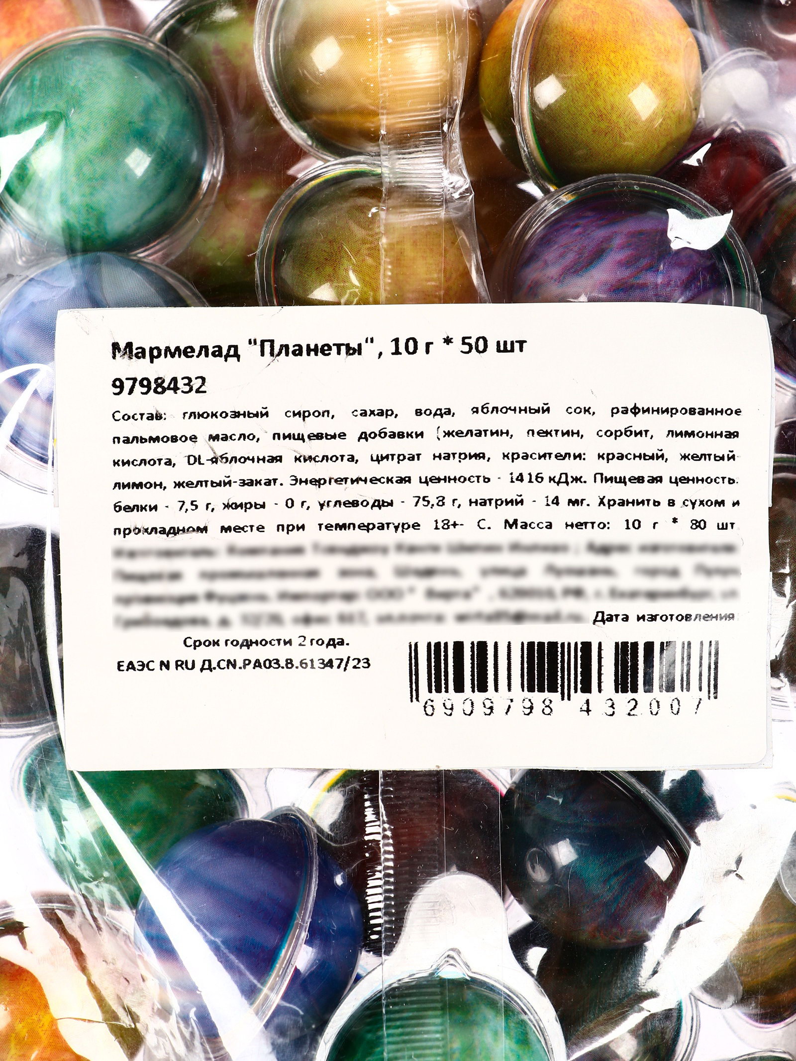 Мармелад "Планеты", набор, 10 г x 50 шт., Китай