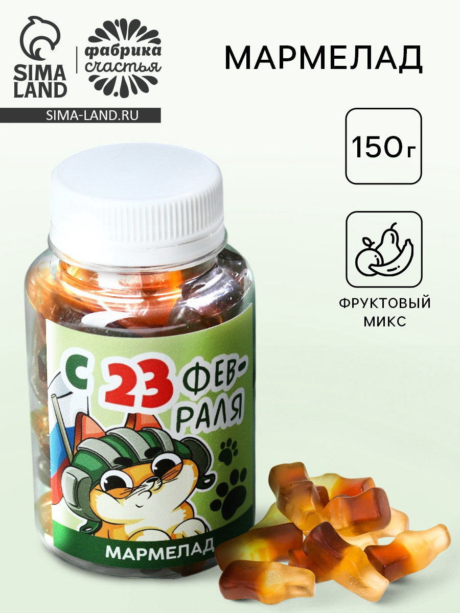Мармелад "С 23 февраля" кот, в банке 150 мл, Фабрика счастья, Россия