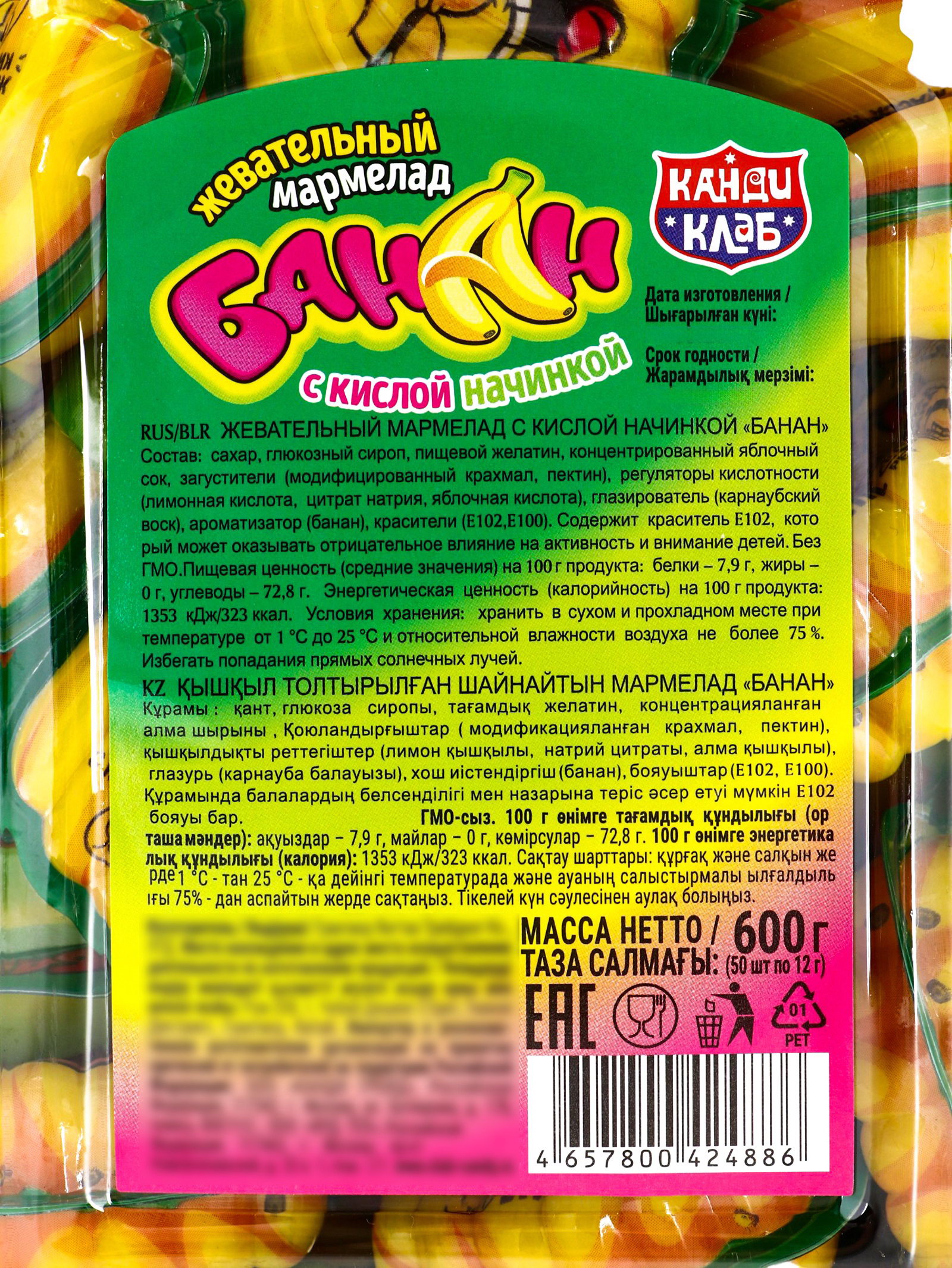 Этот мармелад станет отличным дополнением к любому празднику. Его насыщенный вкус банана и яркий кислый акцент делают его популярным среди любителей сладкого. Используйте его для украшения сладкого стола или в качестве небольшого подарка он обязательно вызовет улыбки! | ||