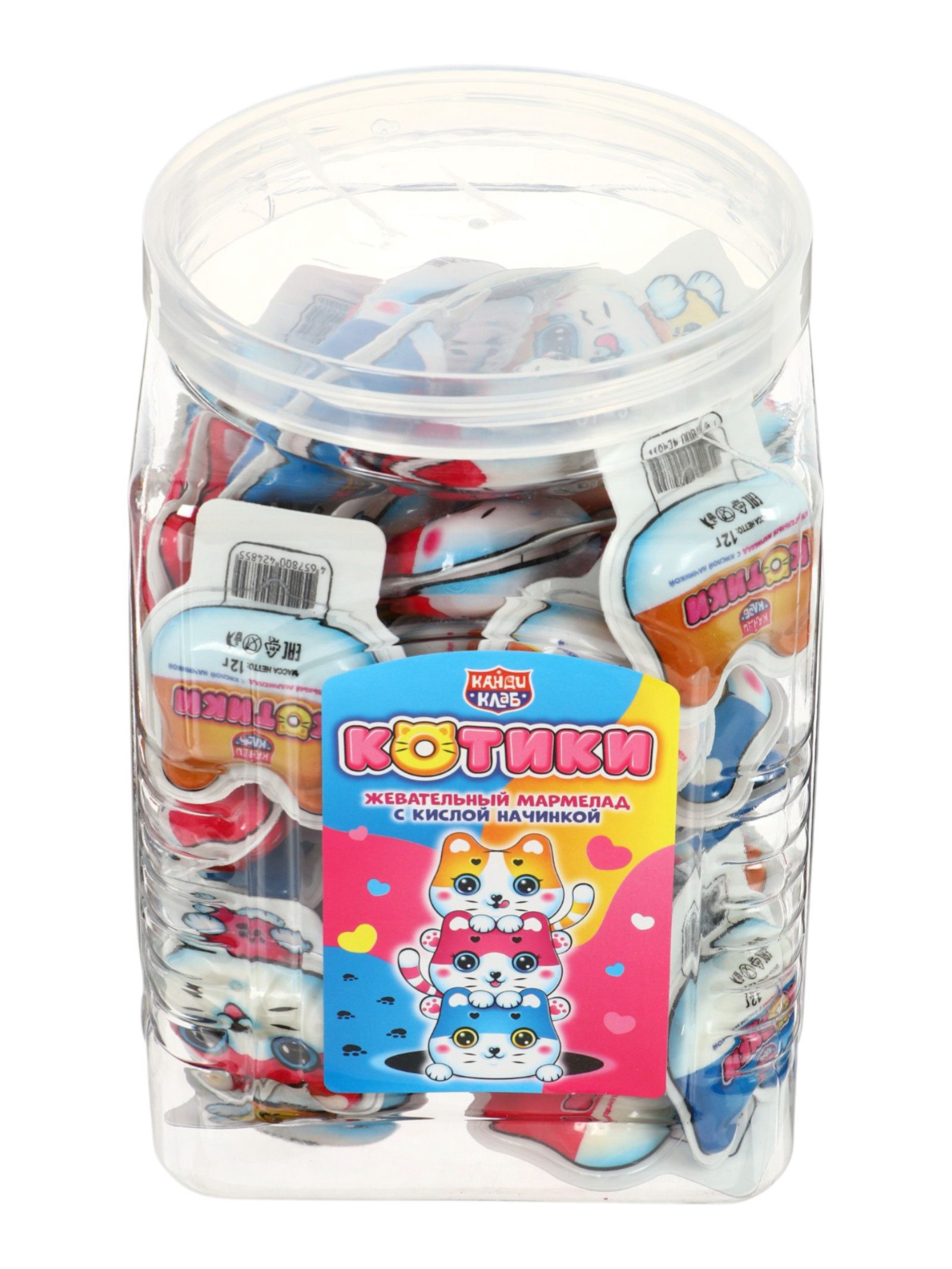 Жевательный мармелад с кислой начинкой "Котики", 12 г, Канди клаб, Китай