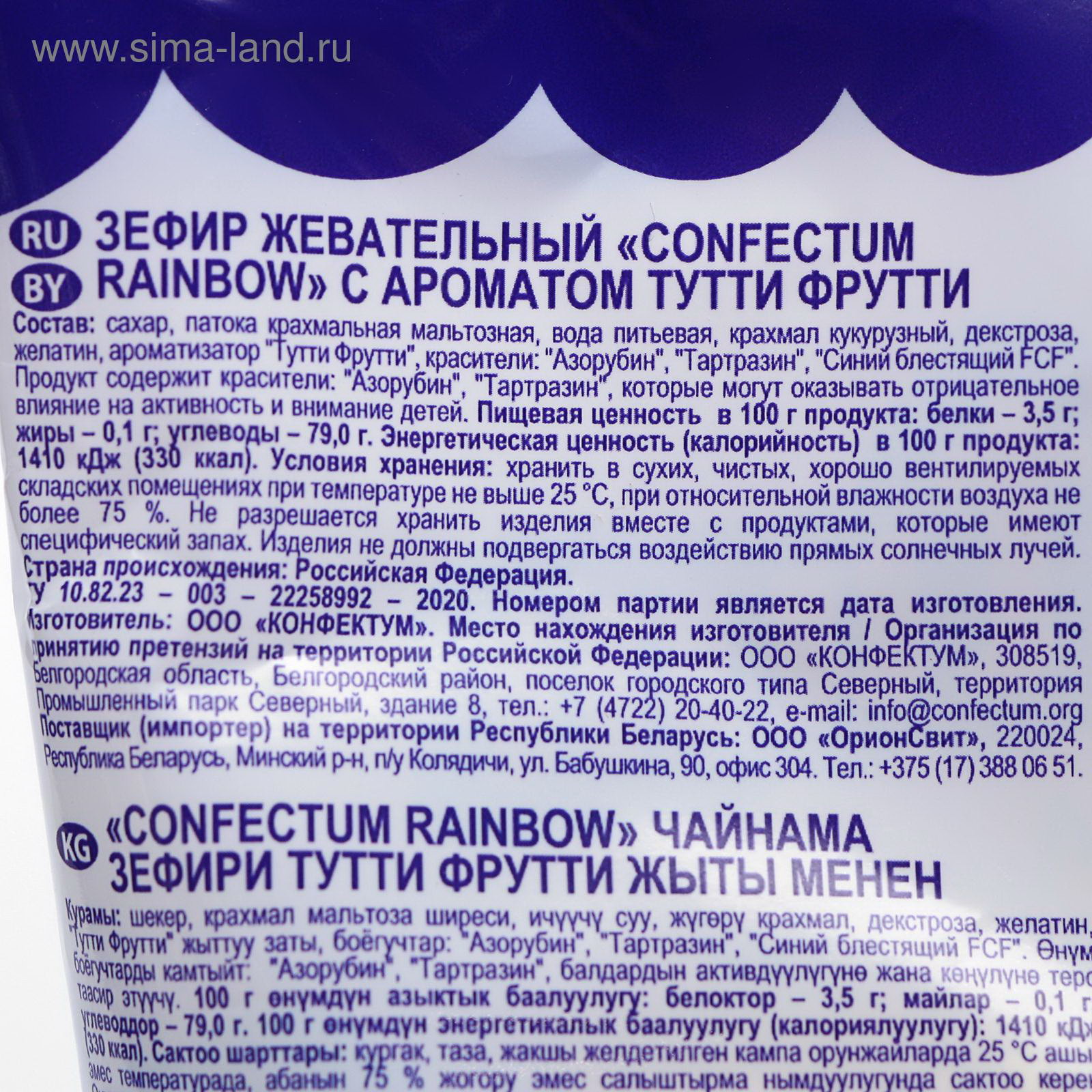 Размер упаковки: 15 x 4 x 24 см. Тематика праздника: Универсальная тематика Тематика праздника: Универсальная тематика tnved: 1704101000 Продукты: Да Температурное ограничение: Нет Вес нетто, г: 100 Вкус: Тутти-фрутти Вид упаковки: Пакет Маршмеллоу - нежное и мягкое кондитерское изделие. По вкусу оно напоминает зефир или пастилу, однако при этом в его составе нет яиц. Лакомиться таким угощением будет вся семья. Его также можно добавлять в какао, выпечку, а также жарить на костре. Состав: патока карамельная мальтозная, сахар, вода питьевая, крахмал кукурузный, глюкоза кристаллическая гидратная (декстроза), желатин, ароматизаторы тутти-фрутти, ваниль, краситель кармин, куркумин, синий блестящий регулятор кислотности кислота винная, обсыпка: глюкоза криталлическая гидратная, регулятор кислотности кислота лимонная, ароматизатор ванилин. | ||