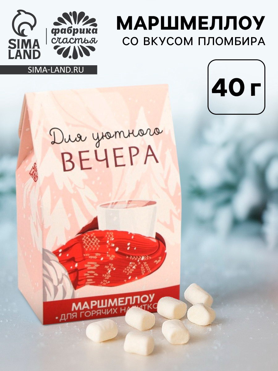 Маршмеллоу для напитков "Для уютного вечера", со вкусом пломбира, 40 гр, Фабрика счастья, Россия