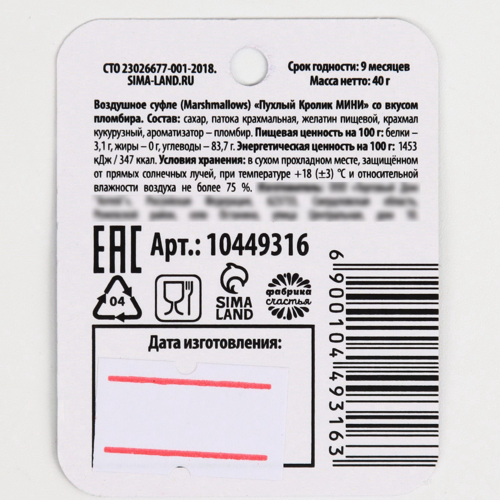 Запрет реализации по сегментам: 00000000266, 00000000593 Размер упаковки: 12 x 4 x 19 см. Вид упаковки: Пакет Вес нетто, г: 40 Вкус: Пломбир Тематика праздника: Новый год Тематика праздника: Новый год tnved: 1704909800 Символ года: Нет Новогодняя коллекция: Новый год ПРИ ОФОРМЛЕНИИ ЗАКАЗА, ПРОСИМ ЗАПРАШИВАТЬ АКТУАЛЬНЫЕ СРОКИ ГОДНОСТИ У МЕНЕДЖЕРА Состав: сахар, патока крахмальная, желатин пищевой, крахмал кукурузный, ароматизатор – пломбир. Пищевая ценность на 100 г: белки – 3,1 г, жиры – 0 г, углеводы – 83,7 гр Энергетическая ценность на 100 г: 1 453 кДж / 347 ккал. Условия хранения: в сухом прохладном месте, защищённом от прямых солнечных лучей, при температуре +18 (±3) ℃ и относительной влажности воздуха не более 75 %. Срок годности: 9 месяцев. Масса нетто: 40 г | ||