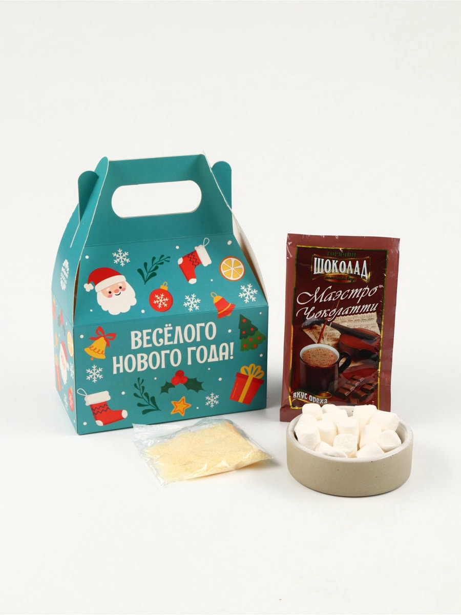 Подарочный набор новогодний "С новым годом": маршмеллоу, вкус: пломбир, 40 г, горячий шоколад, вкус: орех, 25 г, карамель взрывная, 15 г, Фабрика счастья, Россия