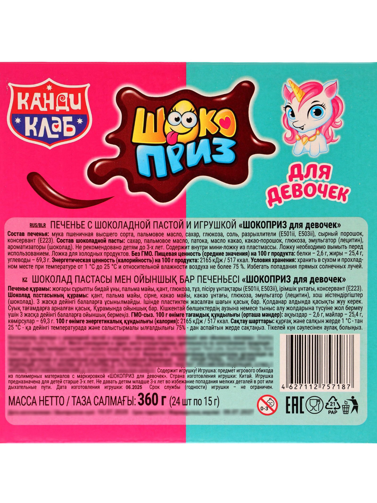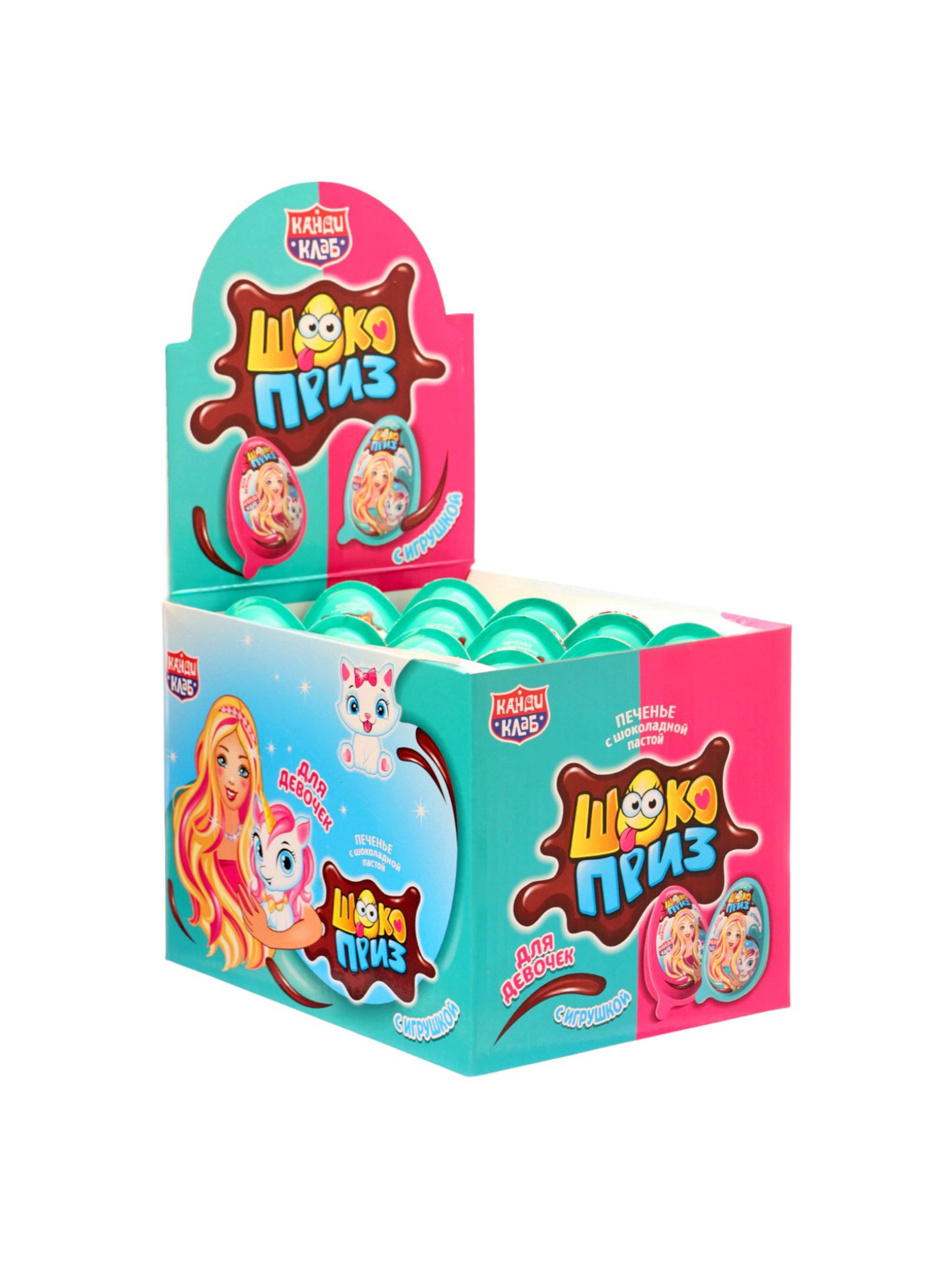 Печенье "Шокоприз" с шоколадной пастой и игрушкой, яйцо-сюрприз, для девочек, 15 г, Канди клаб, Китай