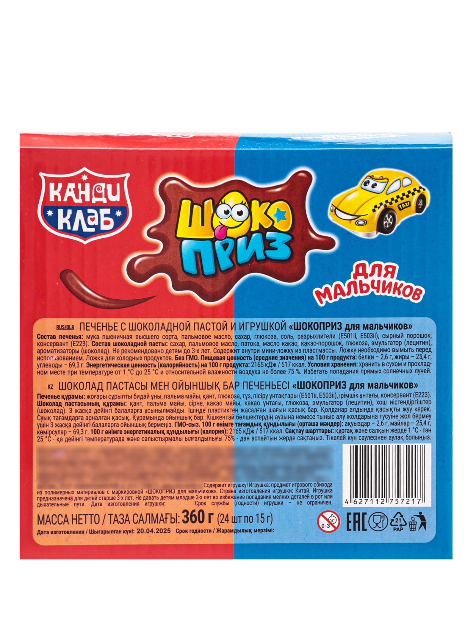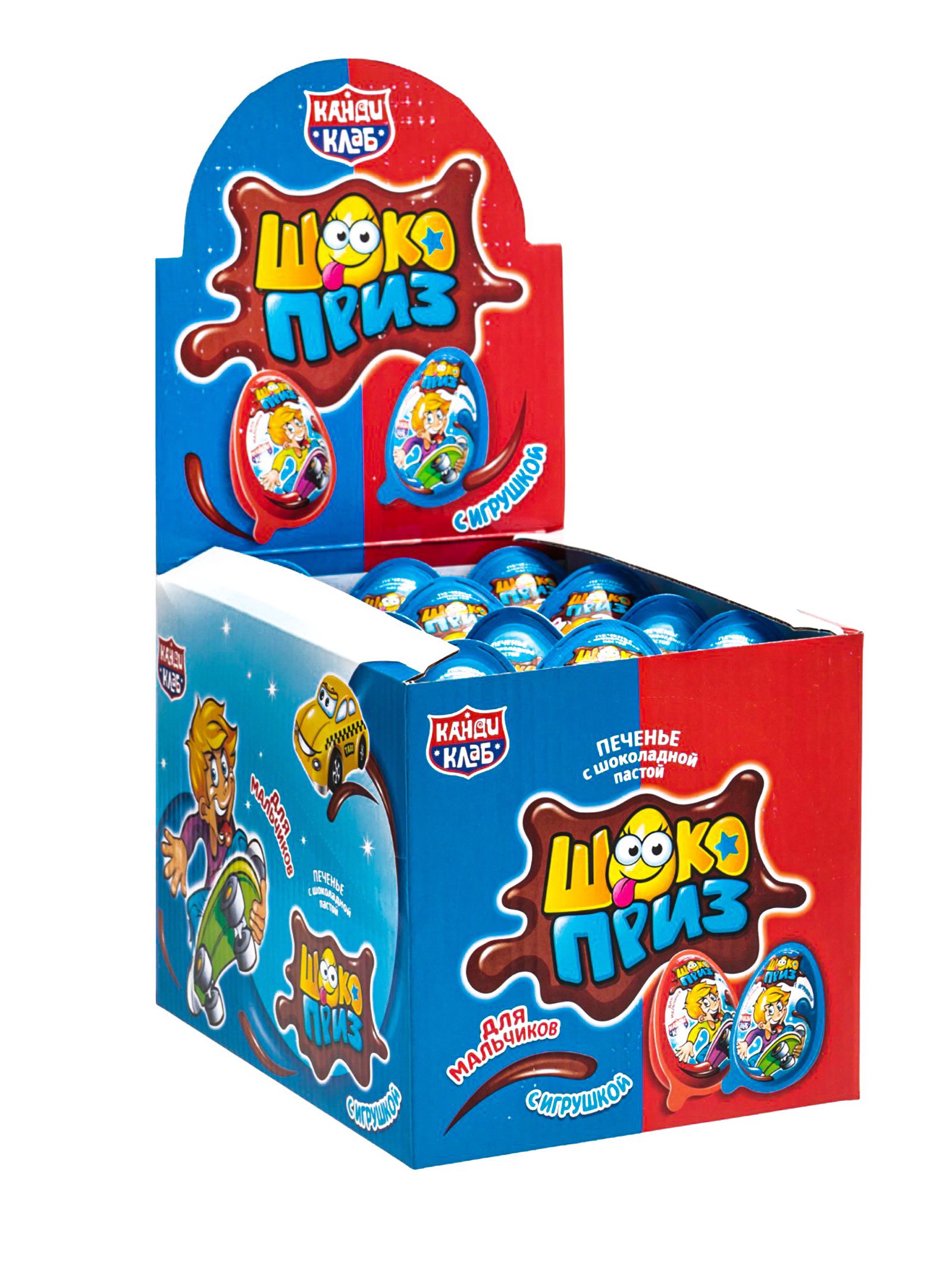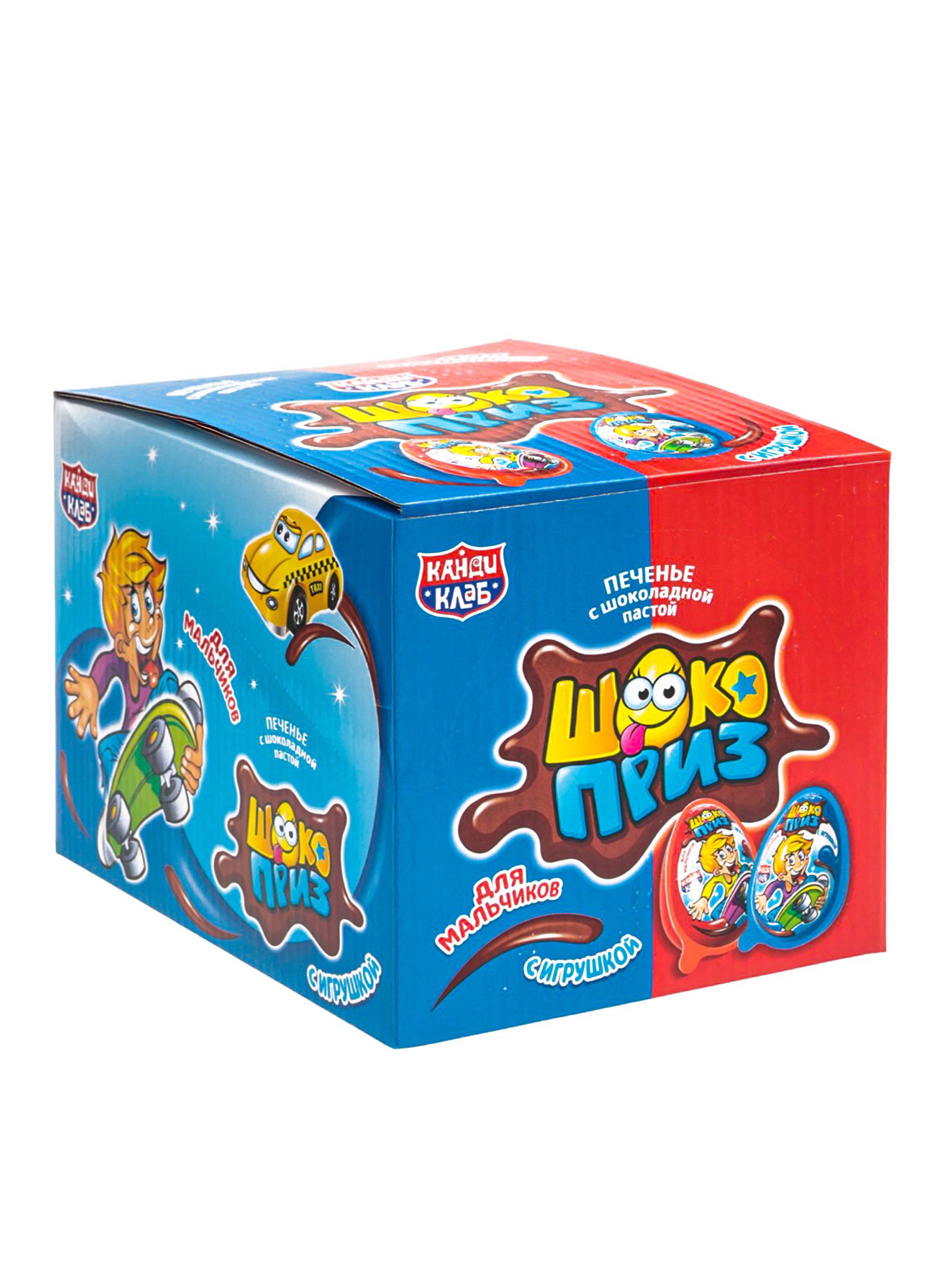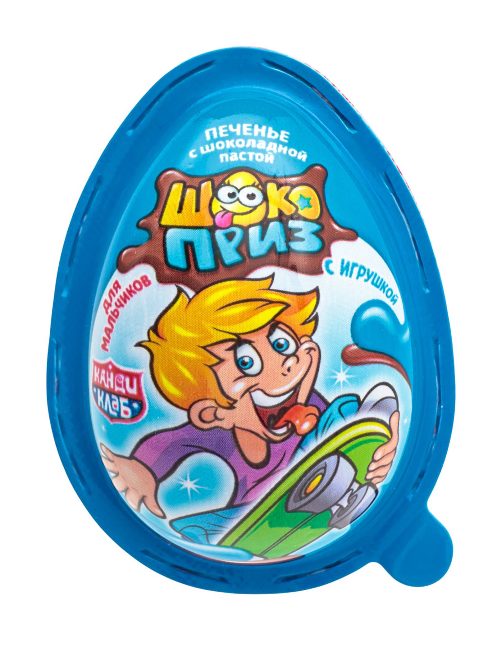 Печенье "Шокоприз" с шоколадной пастой и игрушкой, яйцо-сюрприз, для мальчиков, 15 г, Канди клаб, Китай