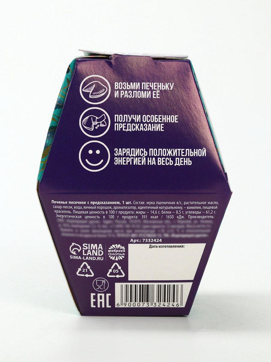 Печенье с предсказанием "Пусть всегда будет место для сказки", 1 шт., Фабрика счастья, Россия