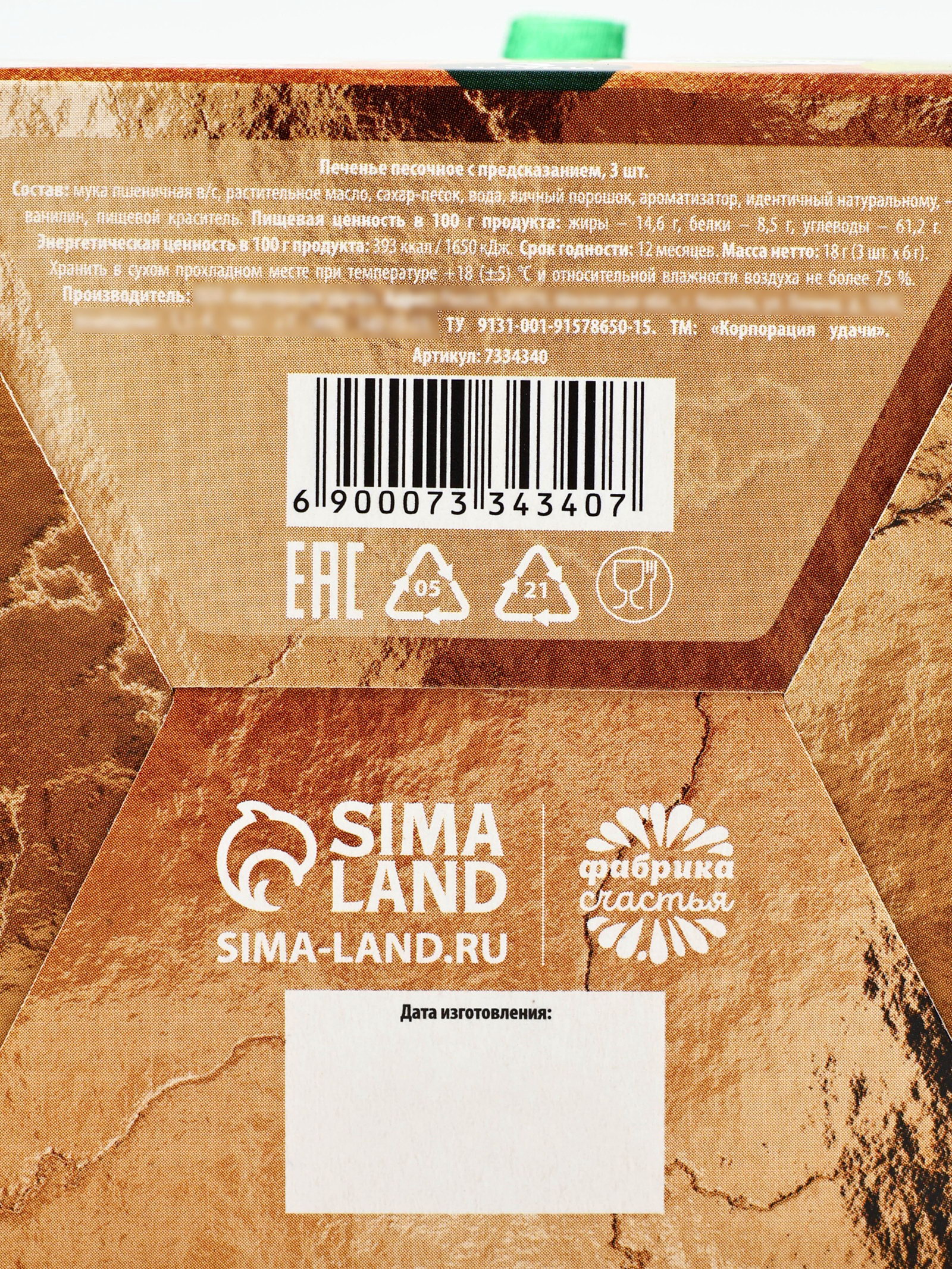 Запрет реализации по сегментам: 00000000266, 00000000593 Для кого: Для девочки, Для женщины Размер упаковки: 8 x 5 x 8 см. Вид упаковки: Подарочная коробка Тип: Песочное Темпер. ограничение НЕ ВЫШЕ ℃: +22 Срок годности, мес: 12 tnved: 1806321000 Набор: Да Адресат: Без адресата Температурное ограничение: Нет Вес нетто, г: 18 Тематика праздника: 8 Марта Вид: С предсказанием При оформление заказа, просим запрашивать актуальные сроки годности у менеджераСостав: мука пшеничная в/с, растительное масло, сахар-песок, вода, яичный порошок, ароматизатор, идентичный натуральному, "Ванилин", пищевой краситель. Срок годности: 12 месяцев. Масса нетто: 18 г | ||
