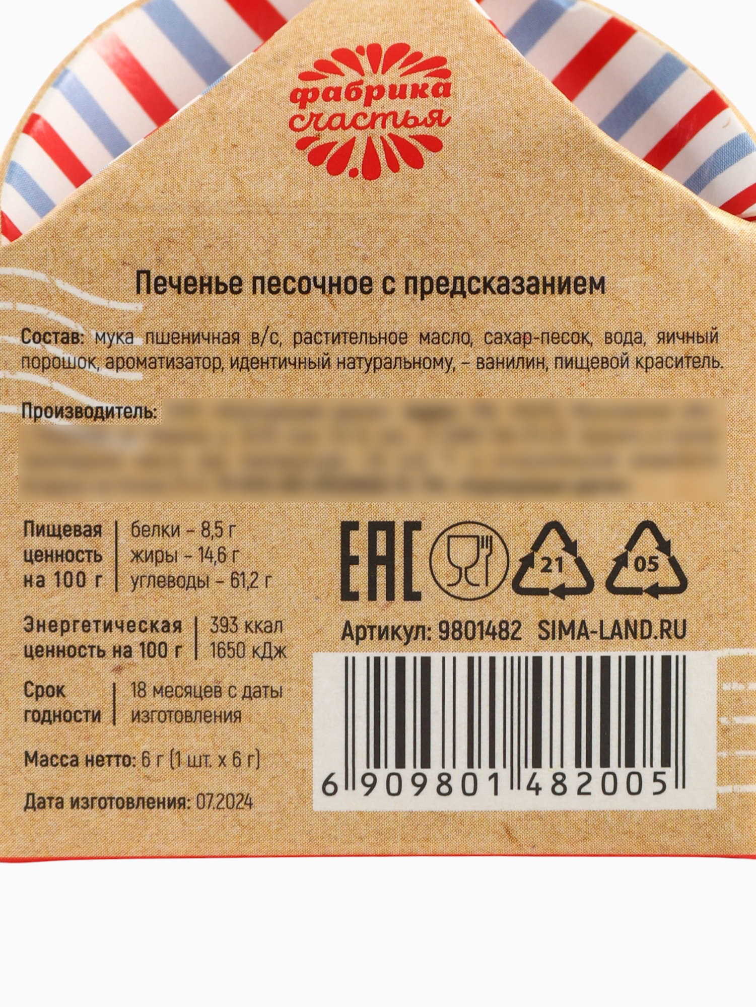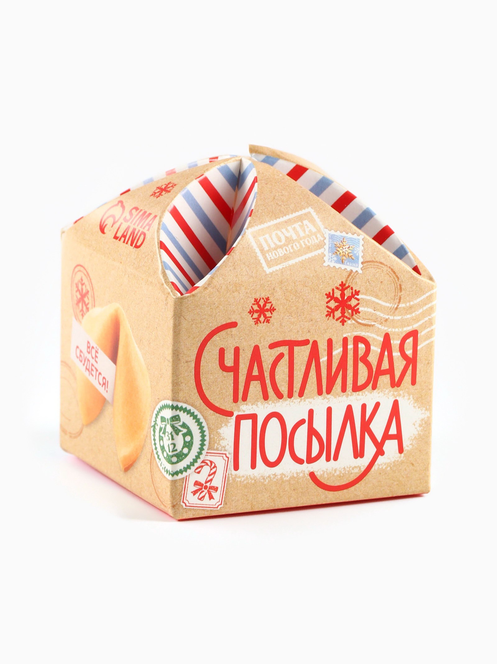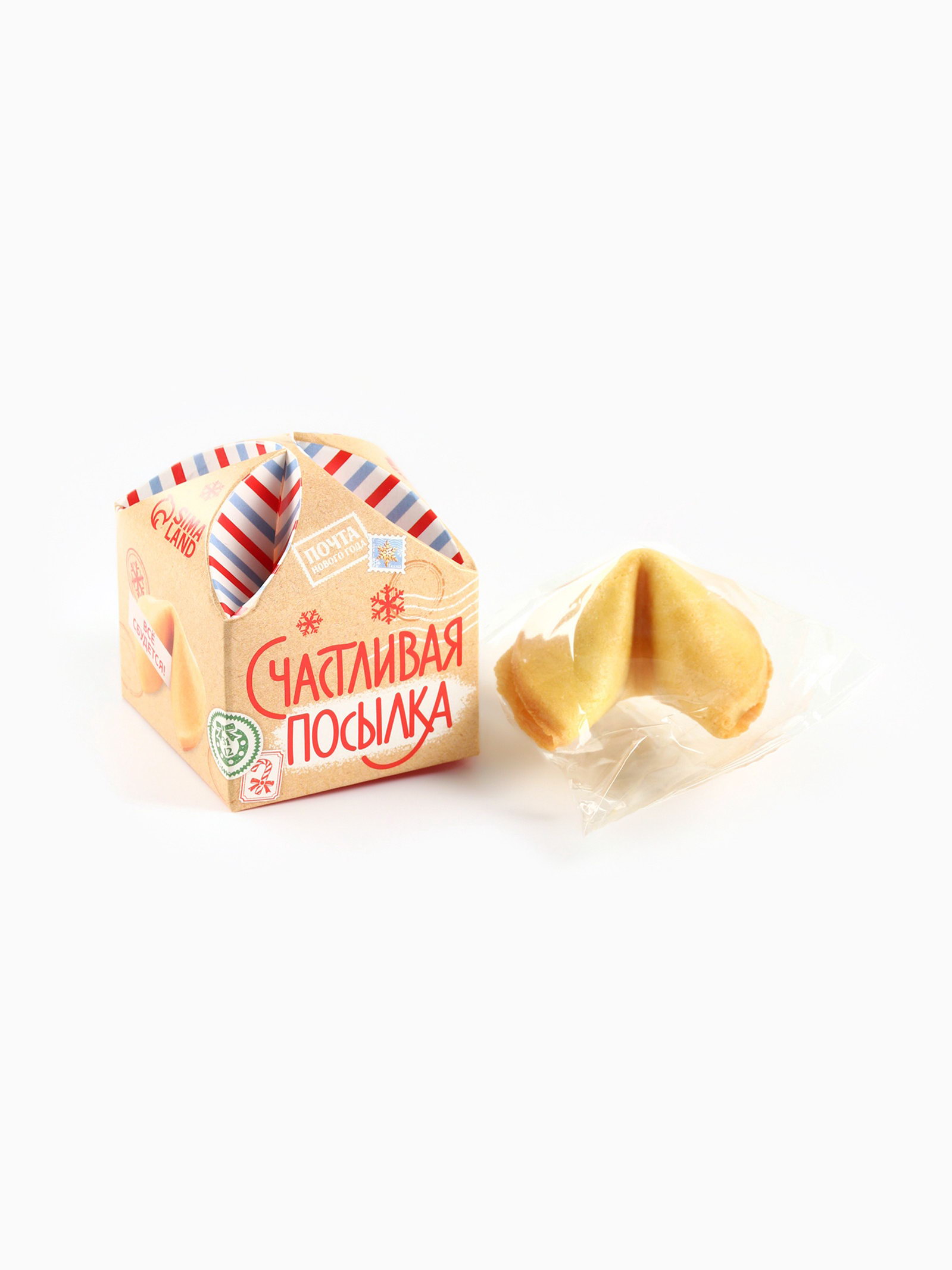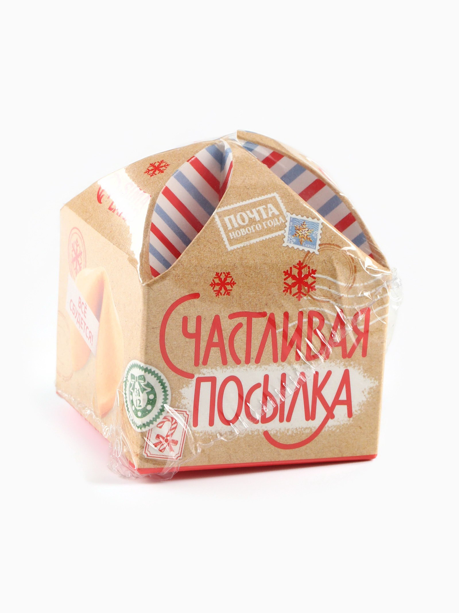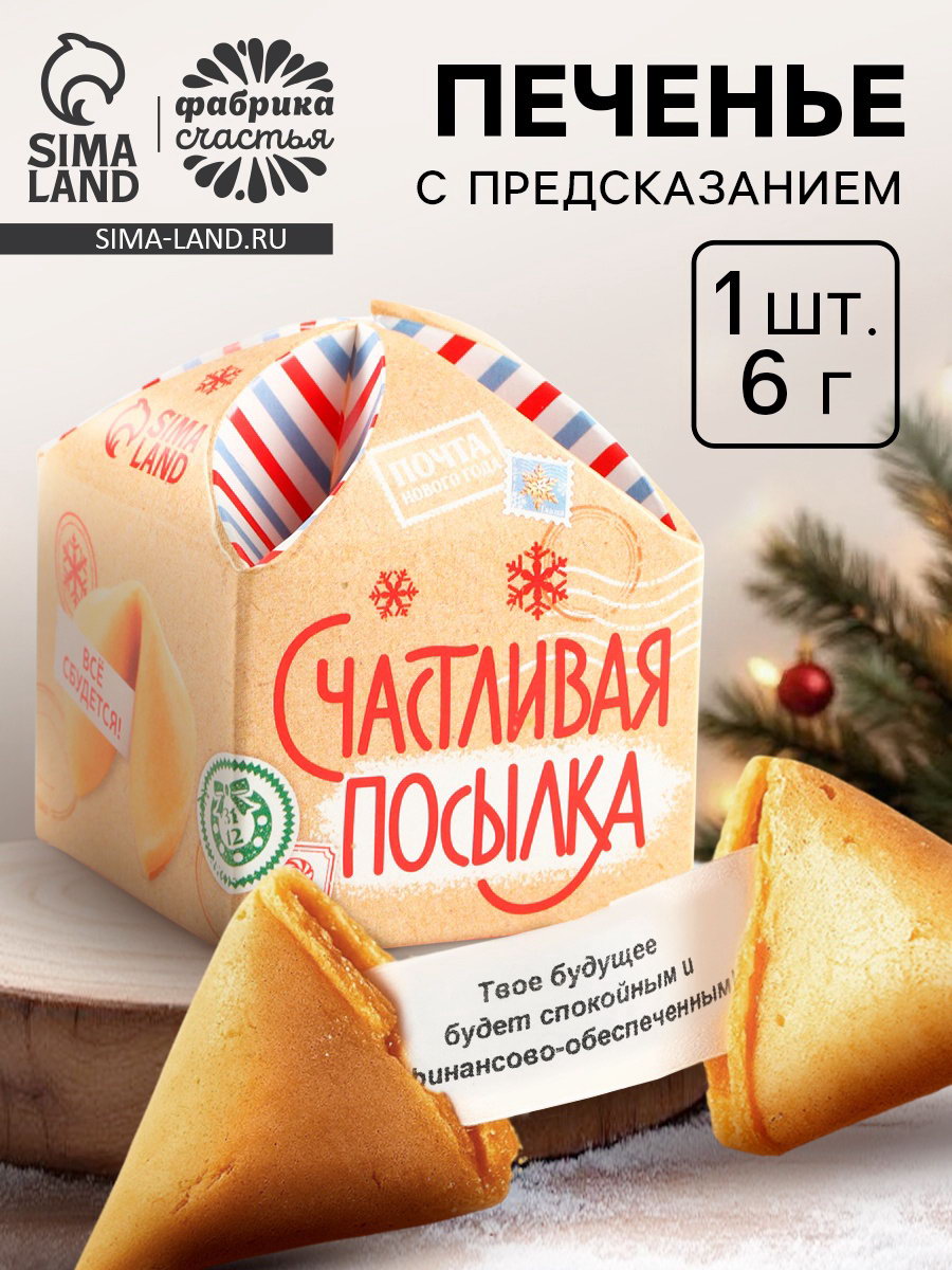 Печенье с предсказанием на новый год "Счастливая посылка", 1 шт x 6 гр, Фабрика счастья, Россия
