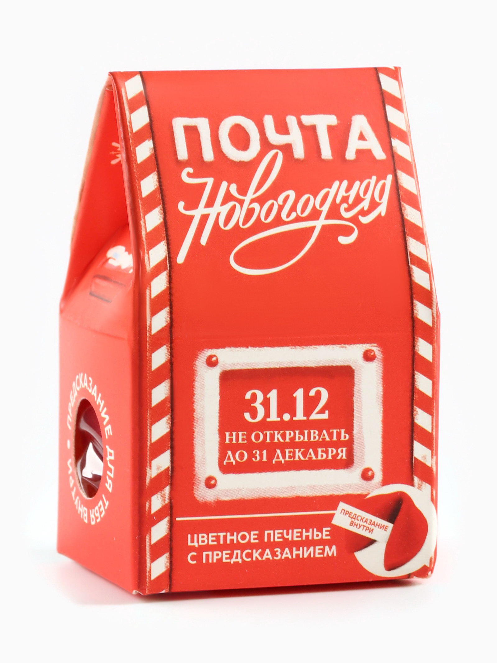 Печенье с предсказанием в коробке-домике "Новогодняя почта", 1 шт, Фабрика счастья, Россия
