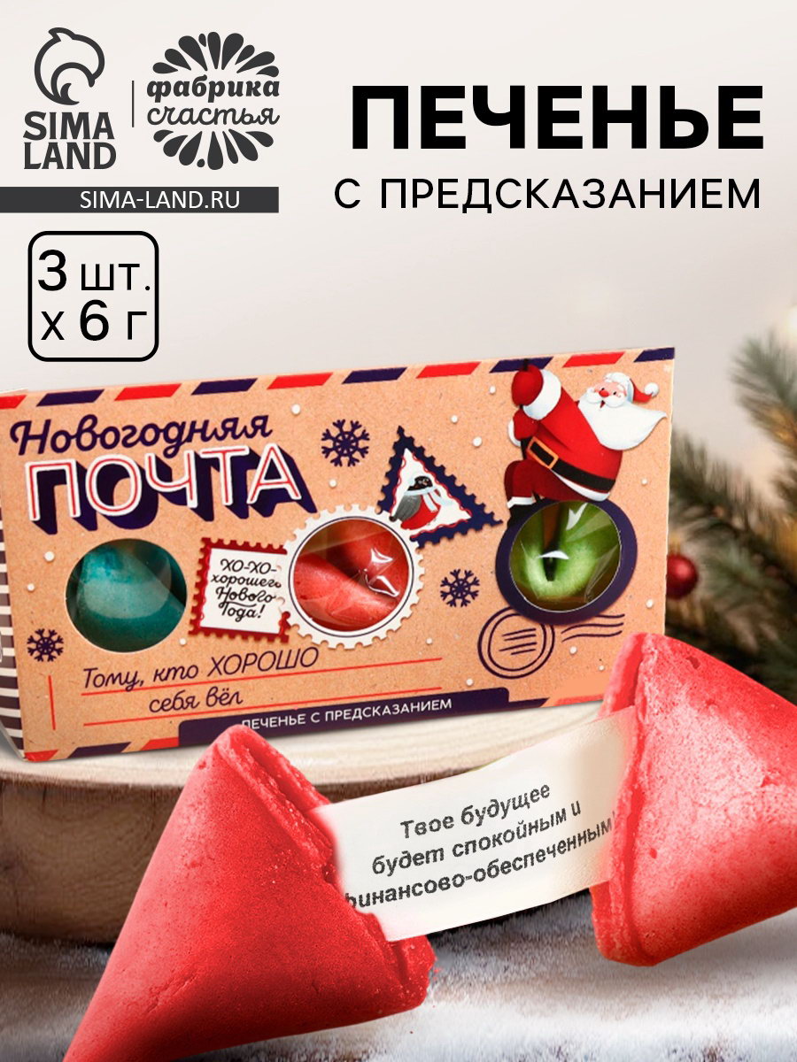 Печенье с предсказаниями в коробке-домике "Новогодняя почта", 3 шт., Фабрика счастья, Россия