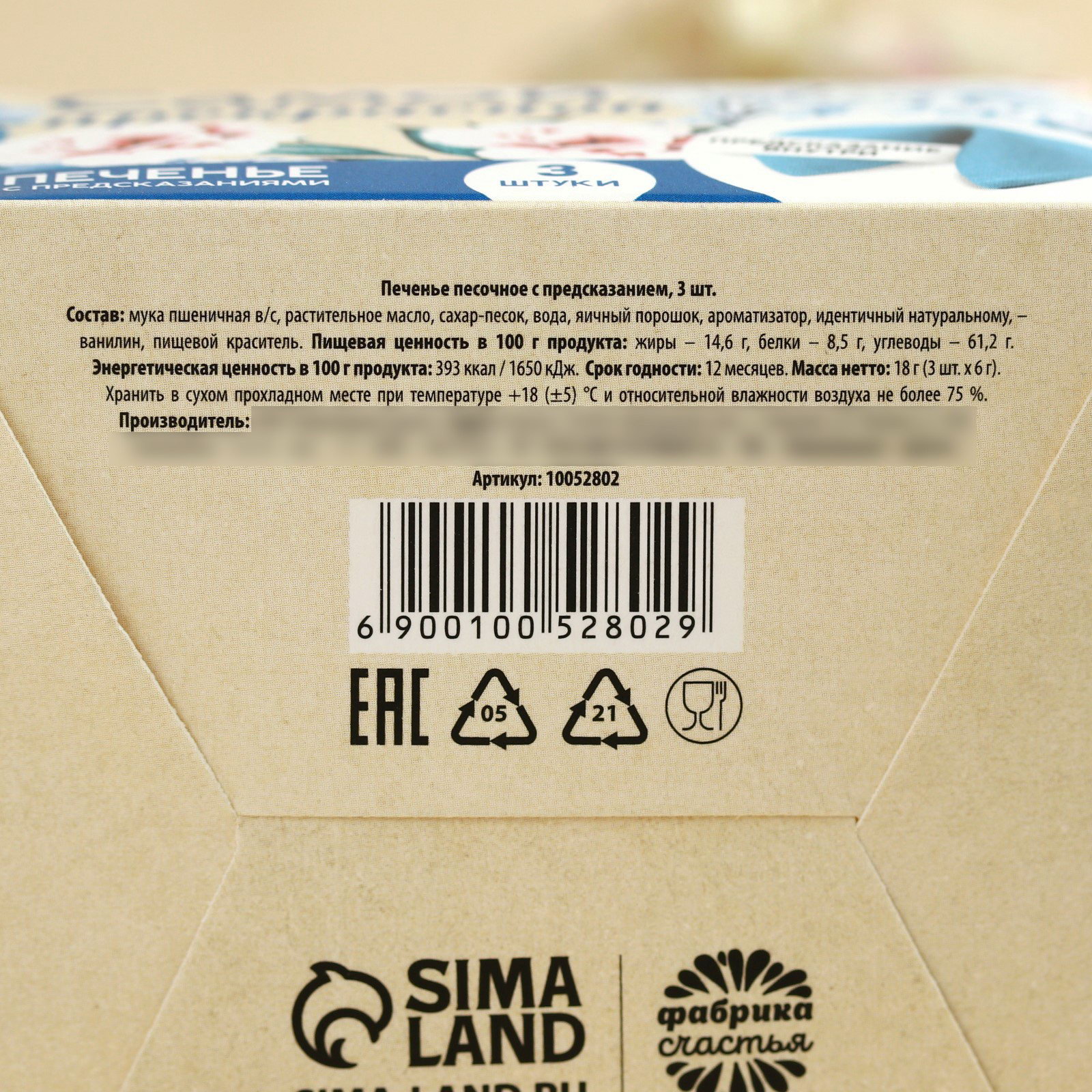 Печенье с предсказанием "Тебе с любовью", 3 шт.x6 г, Фабрика счастья, Россия
