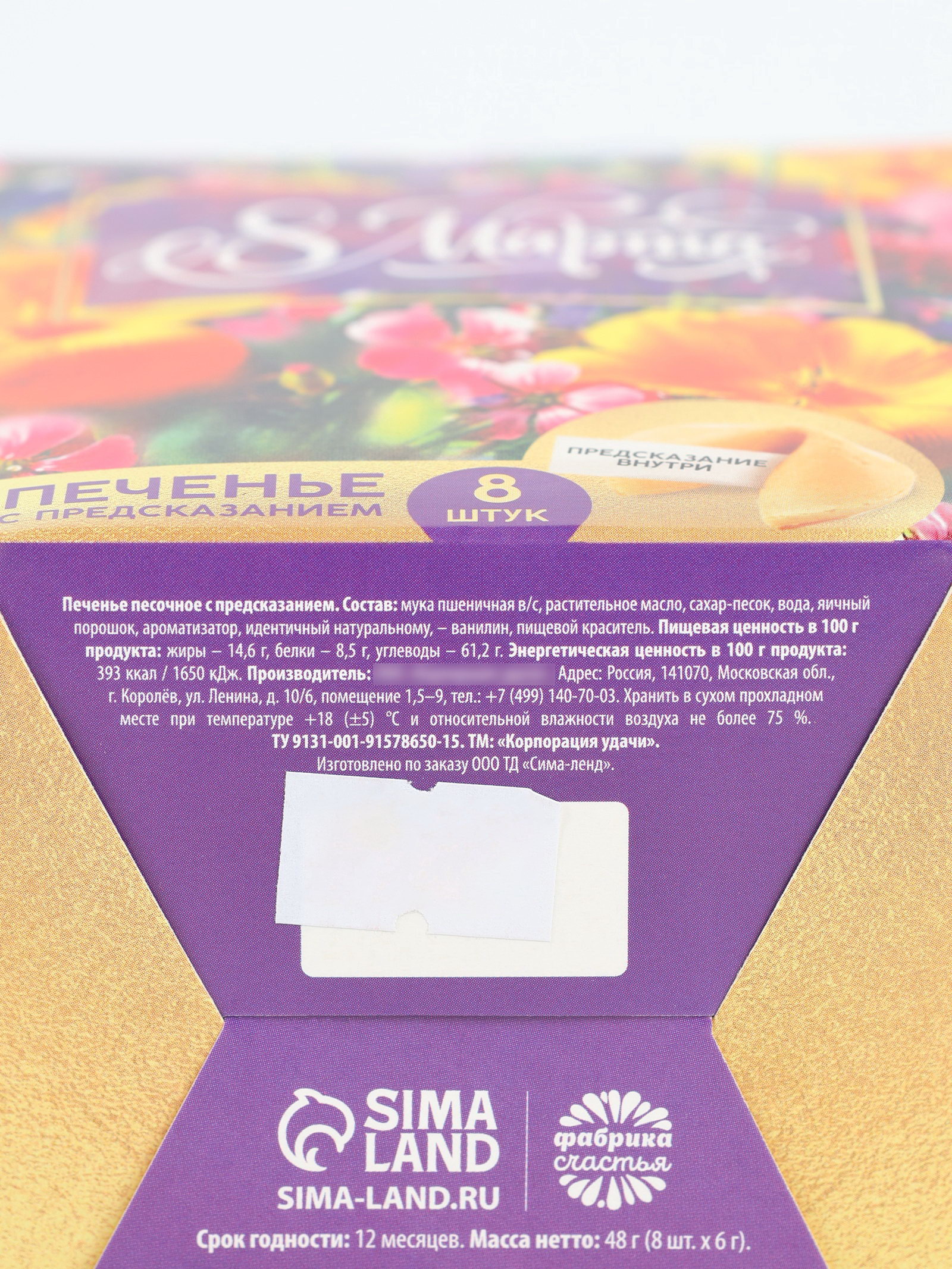 Запрет реализации по сегментам: 00000000266, 00000000593 Размер упаковки: 10 x 11.2 x 10 см. Вид: С предсказанием Тип: Песочное Вид упаковки: Подарочная коробка Вес нетто, г: 48 Тематика праздника: 8 Марта Темпер. ограничение НЕ ВЫШЕ ℃: +22 Тематика подарка: Продукты питания tnved: 1905320000 Для кого: Для женщины Набор: Да Адресат: Без адресата Состав: мука пшеничная в/с, растительное масло, сахар-песок, вода, яичный порошок, ароматизатор, идентичный натуральному, - ванилин, пищевой краситель. Срок годности: 12 месяцев Масса нетто: 48 г ( 8 шт . x 6 г). | ||